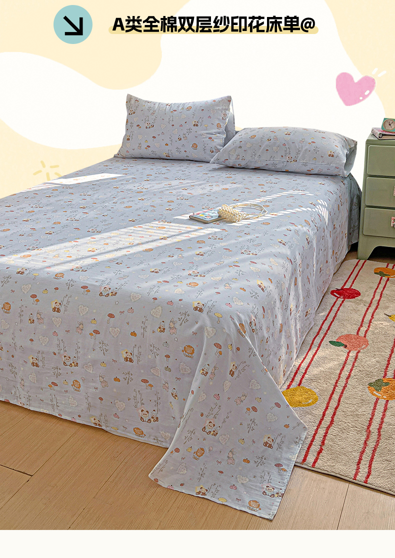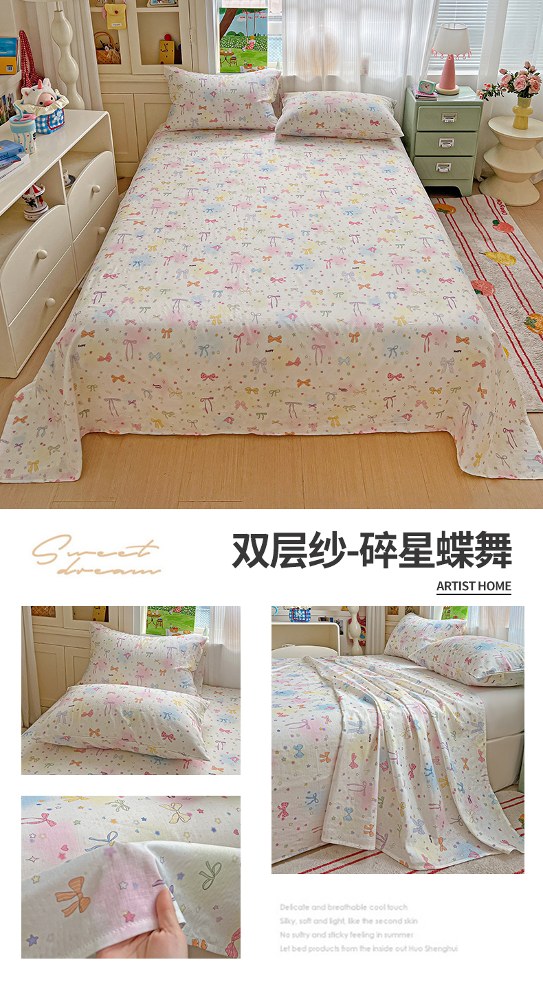 (总)名兮家居 2026新款全棉纯棉A类双层纱单床单 床单单件,双层纱-彩色波点,双层纱-彩条樱桃,双层纱-狗狗幻想,双层纱-花田鸭,双层纱-兰花小兔,双层纱-蘑菇屋,双层纱-木马集,双层纱-奶黄星仔,双层纱-晴天兔,双层纱-趣味王国,双层纱-碎星蝶舞,双层纱-童梦缘,双层纱-小狗日记,双层纱-星星凯特,双层纱-猪猪乐园,双层纱-竹林派对