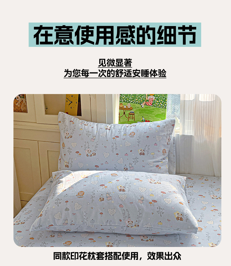 • 91家纺网 家纺一手货源 找家纺 名兮家居 2026新款全棉纯棉A类双层纱单床单 床单单件 双层纱-竹林派对