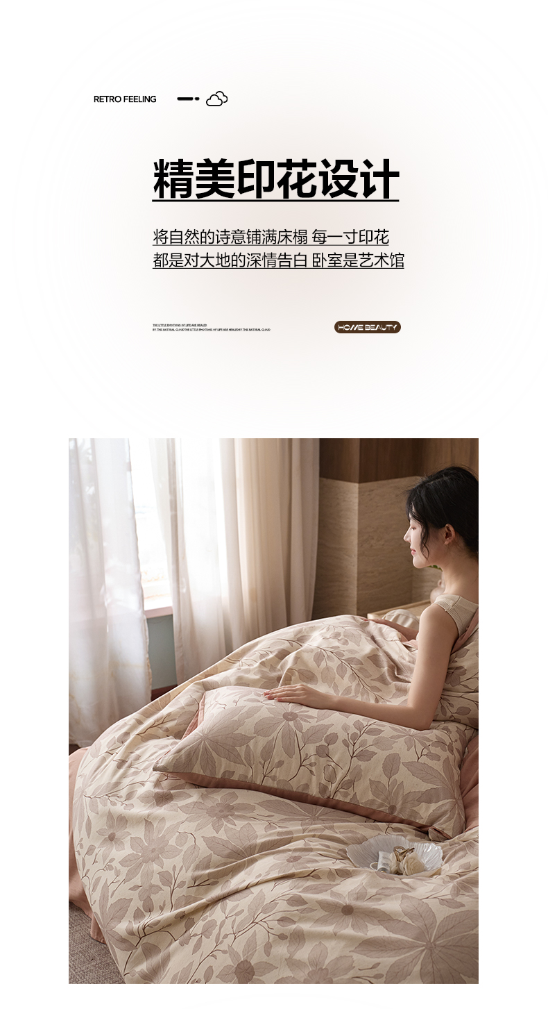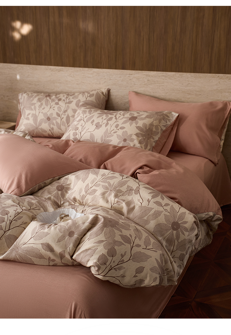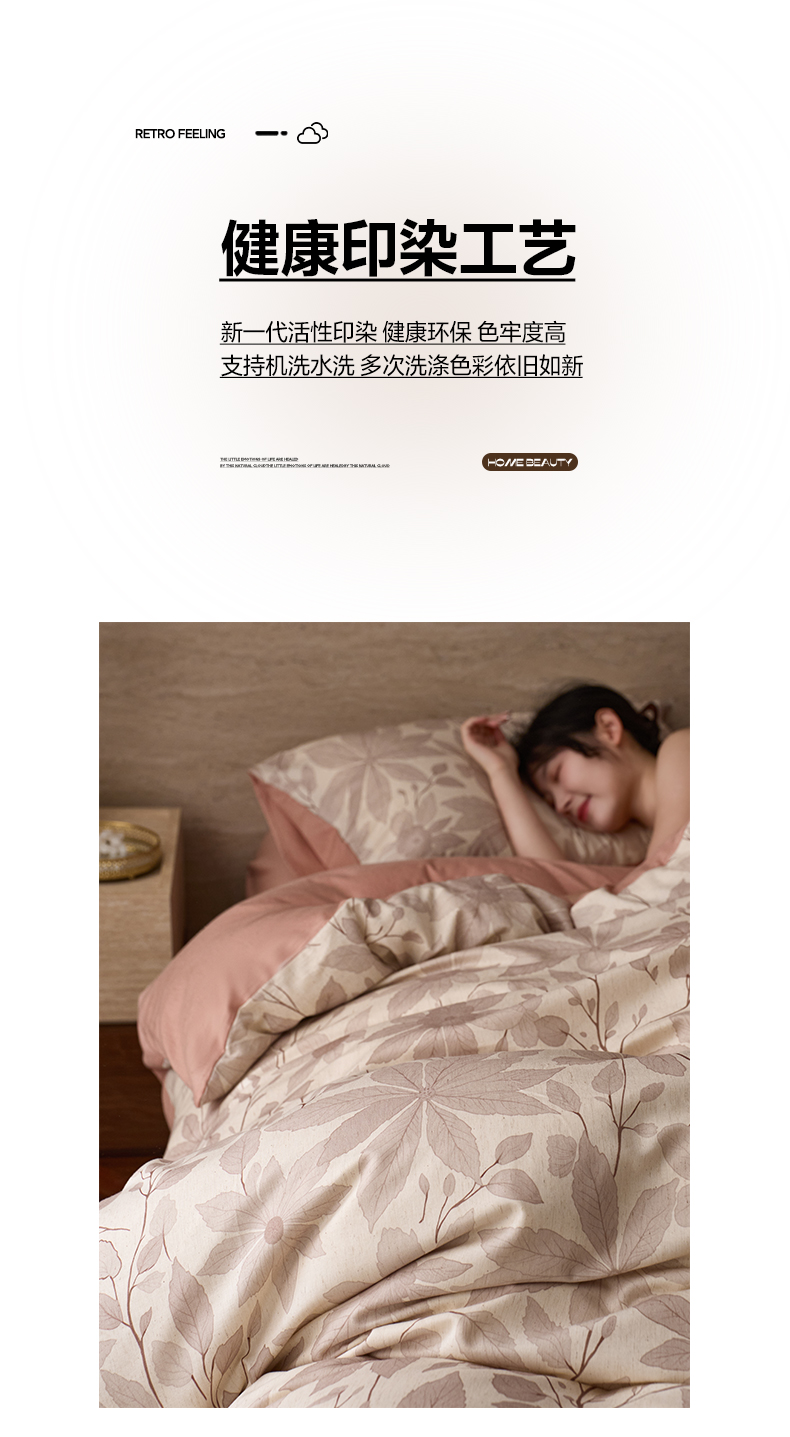 商品名称:如一 2026新款A类复古全棉棉麻印花四件套 枝叶