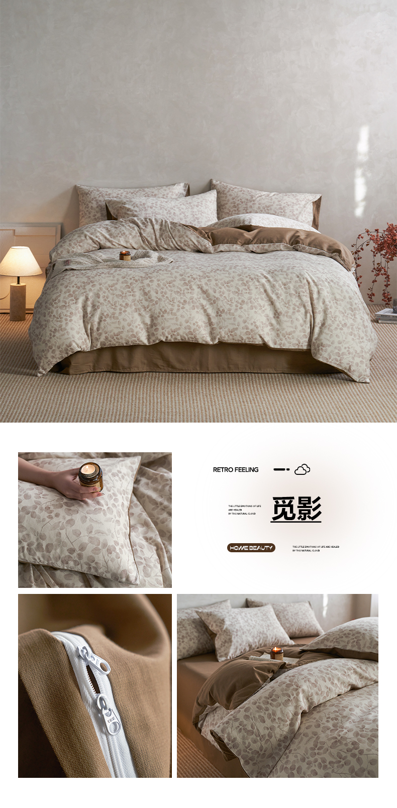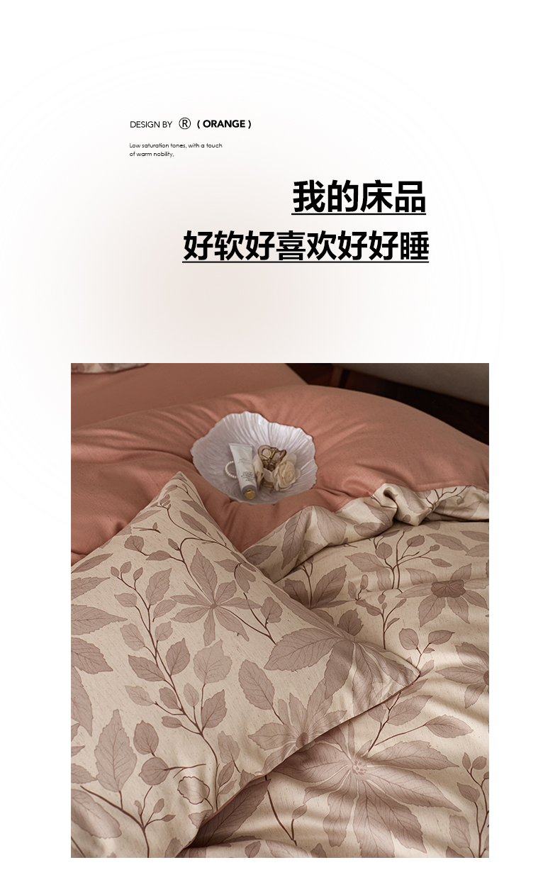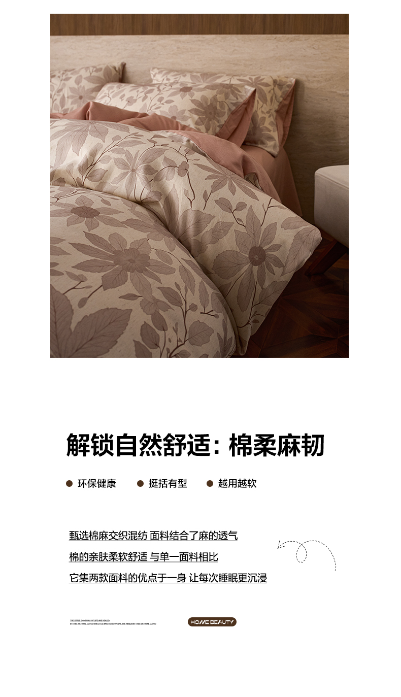 商品名称:如一 2026新款A类复古全棉棉麻印花四件套 枝叶