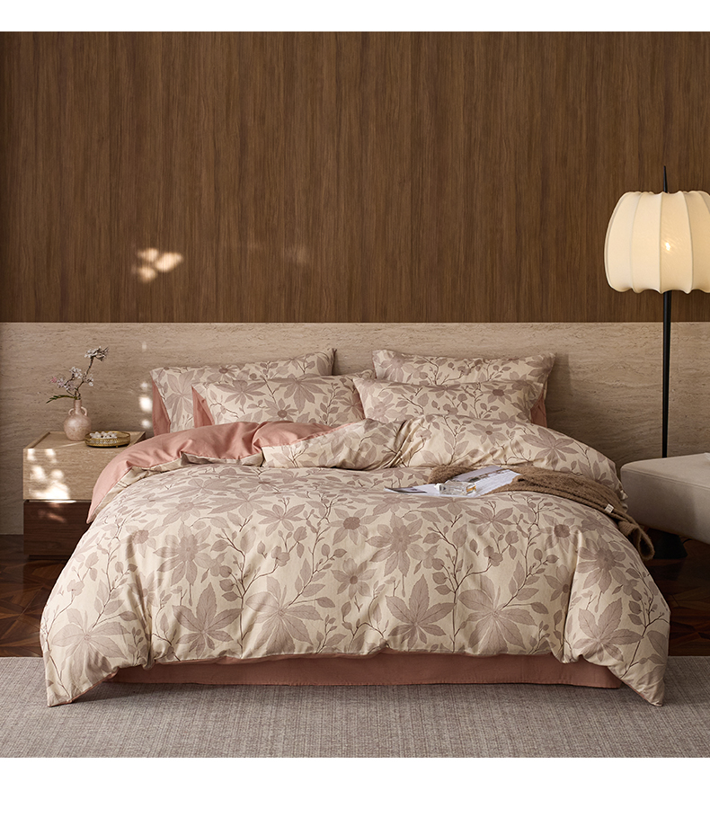 如一 2026新款A类复古全棉棉麻印花四件套 枝叶