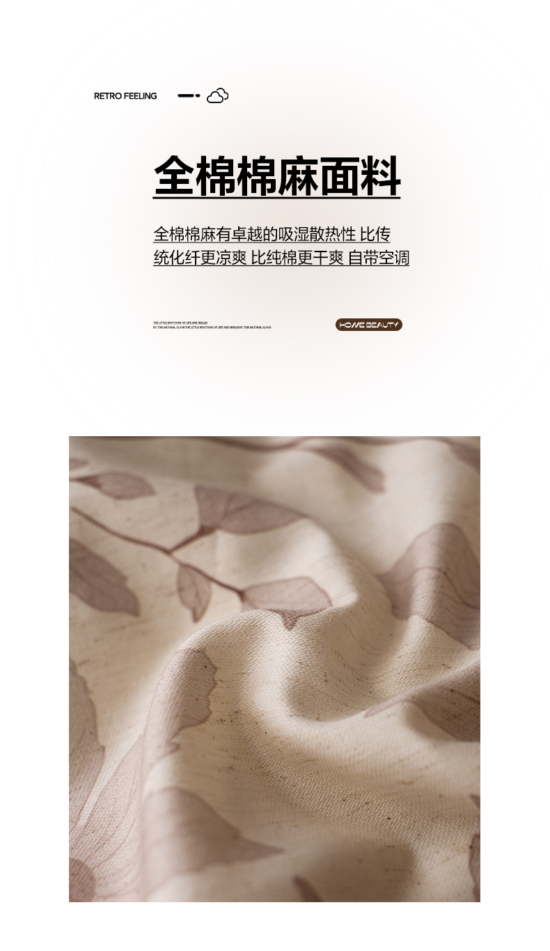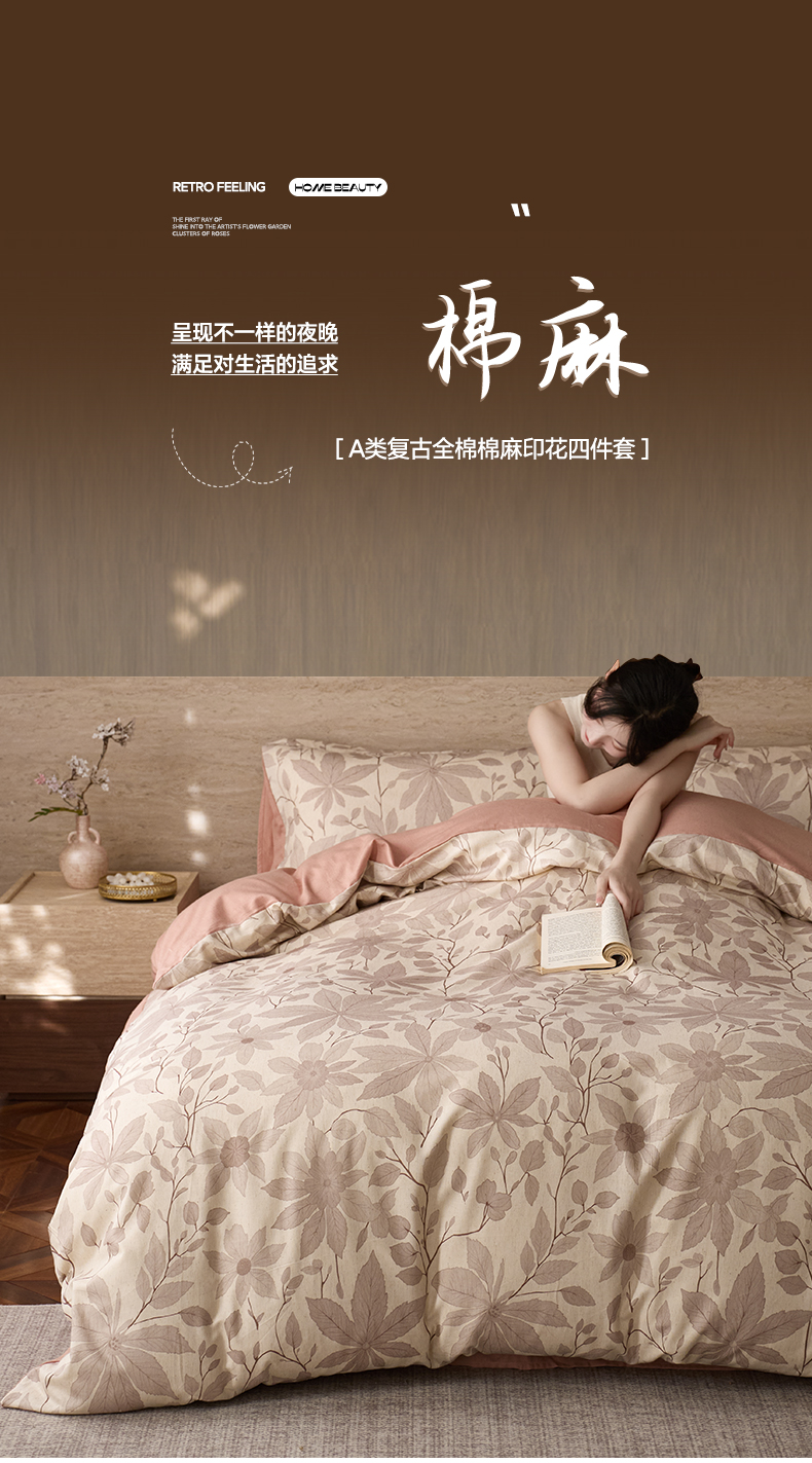 商品名称:如一 2026新款A类复古全棉棉麻印花四件套 枝叶