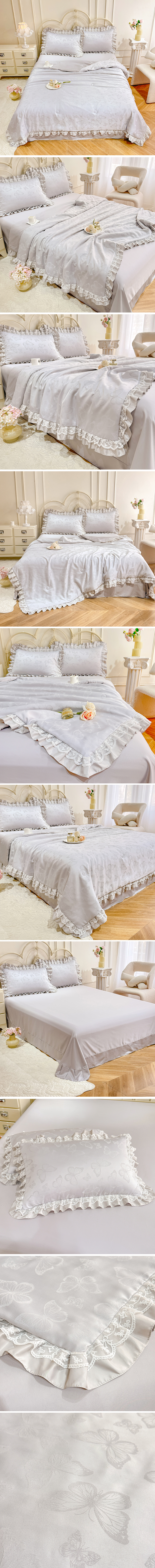 优贝家纺 2026春夏新款提花水洗天丝冰丝天丝韩版夏被夏凉被空调被四件套 蝶舞-灰