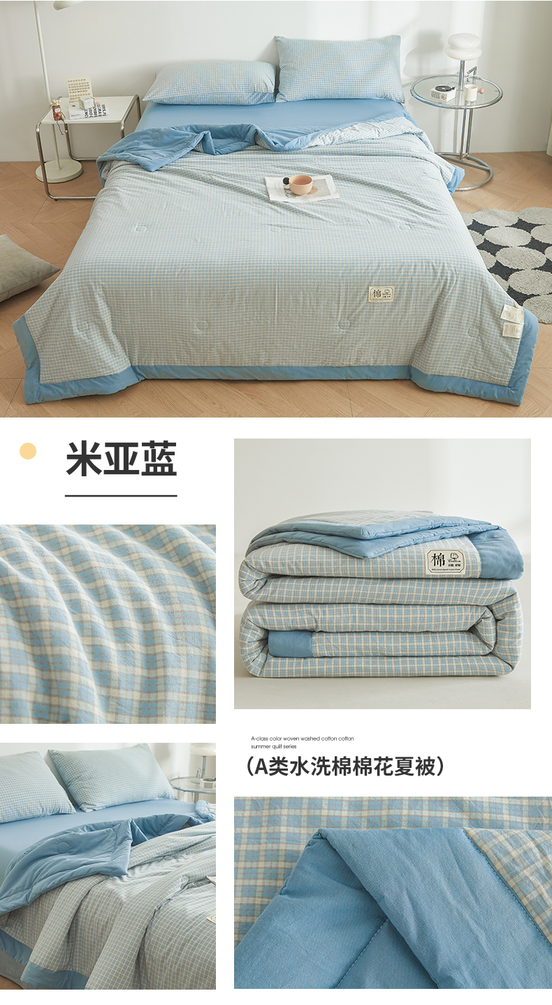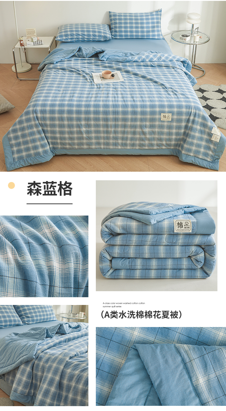 (总)晓时候 2026新款全棉色织水洗棉棉花夏被夏凉被空调被,巴宝莉格,粉大格,粉小格,海蓝大格,黄小格,灰细条,灰中格,简兮蓝,蓝灰大格,蓝条纹,蓝小格,洛卡灰,绿咖大格,莫尼蓝,星空桔,云舒粉