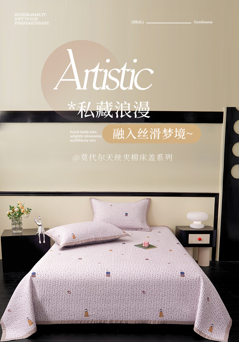 • 91家纺网 家纺一手货源 找家纺 金艾草 2026春夏新款莫代尔天丝水洗床盖有同款夏被床盖单件 伊特花园