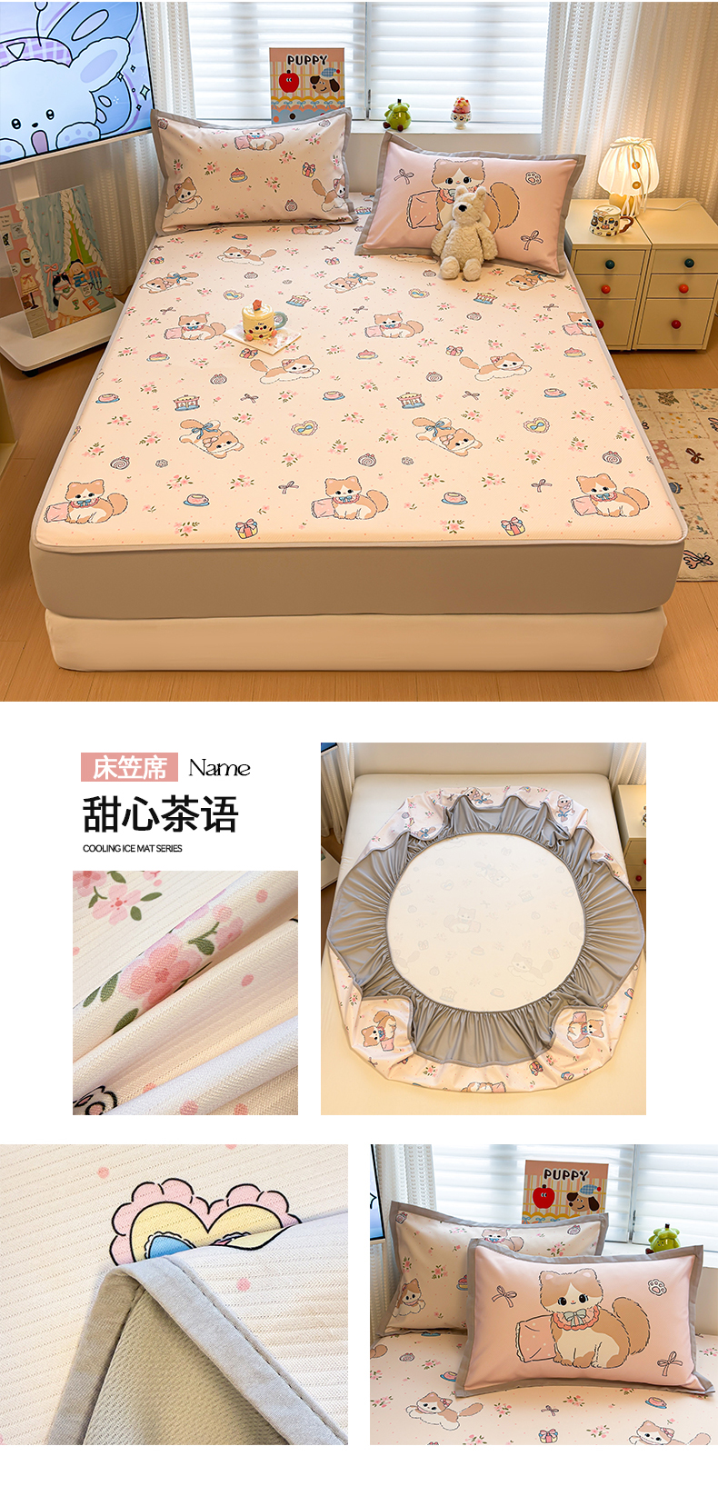 (总)懒猫家纺 2026新款卡通凉感冰丝床笠款凉席,床笠席-冰淇淋小狗,床笠席-彩豆汪汪队,床笠席-彩格萌宠,床笠席-费尔岛,床笠席-格纹爱犬,床笠席-汉堡小狗,床笠席-咖豹小猫,床笠席-酷狗腊肠,床笠席-礼物小熊,床笠席-甜心茶语,床笠席-星愿萌宠,床笠席-熊兔玩伴