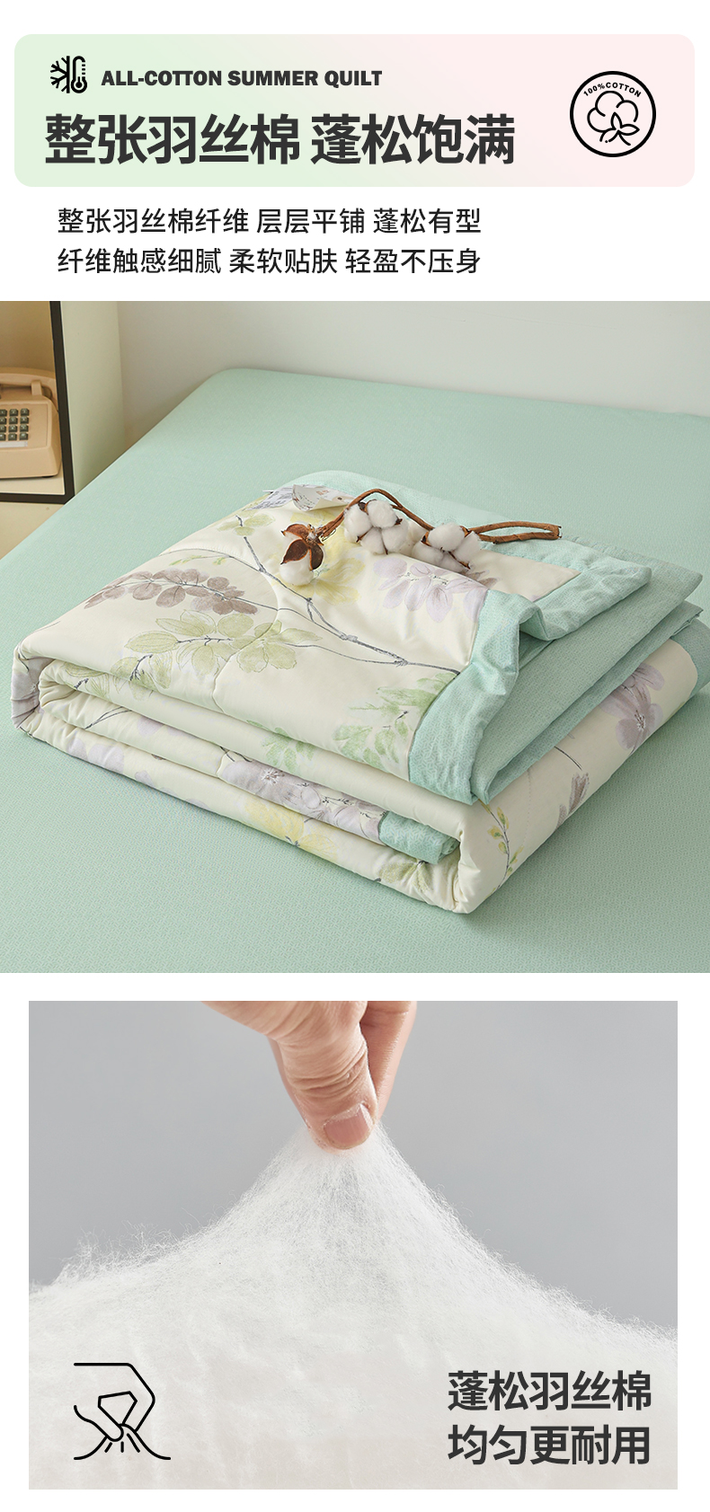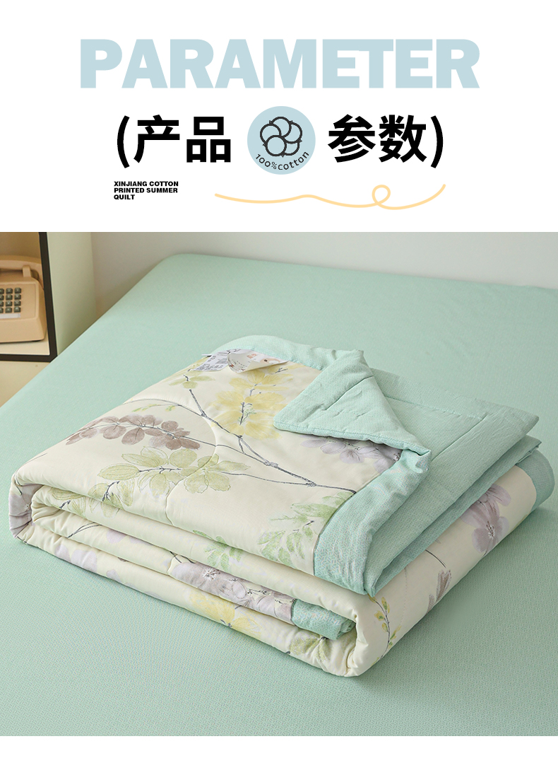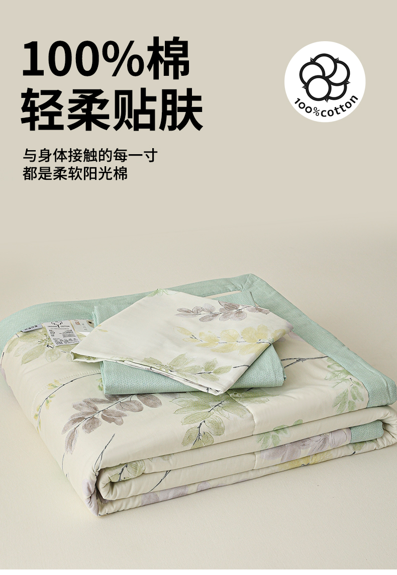商品名称:尊妙被业 2026春夏新款全棉印花夏被空调被夏凉被 栖川 绿