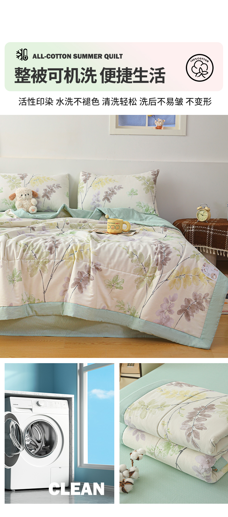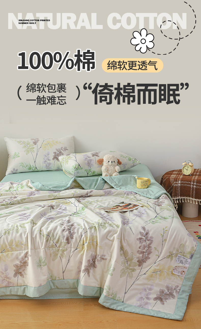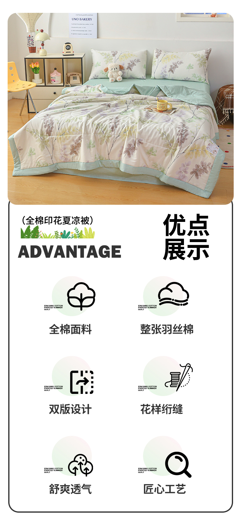商品名称:尊妙被业 2026春夏新款全棉印花夏被空调被夏凉被 栖川 绿