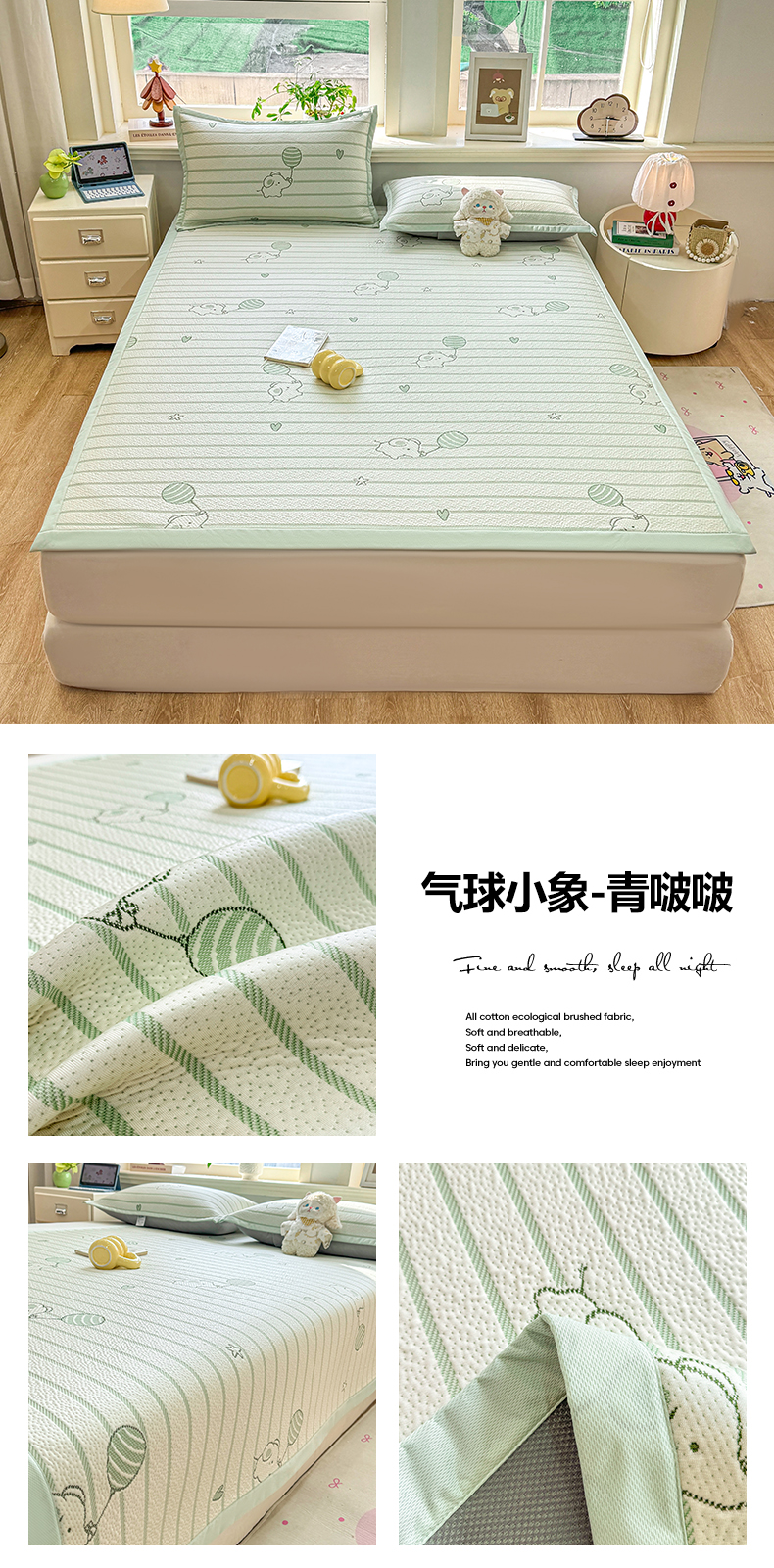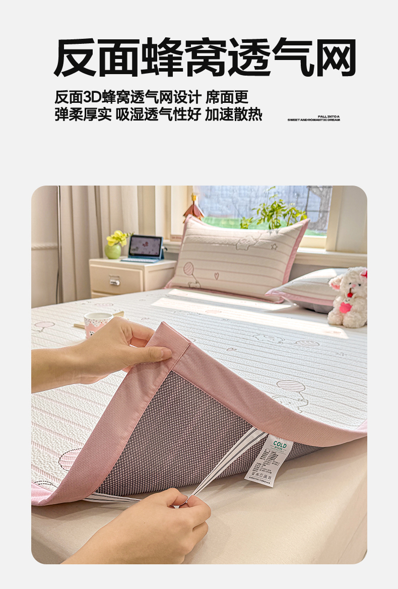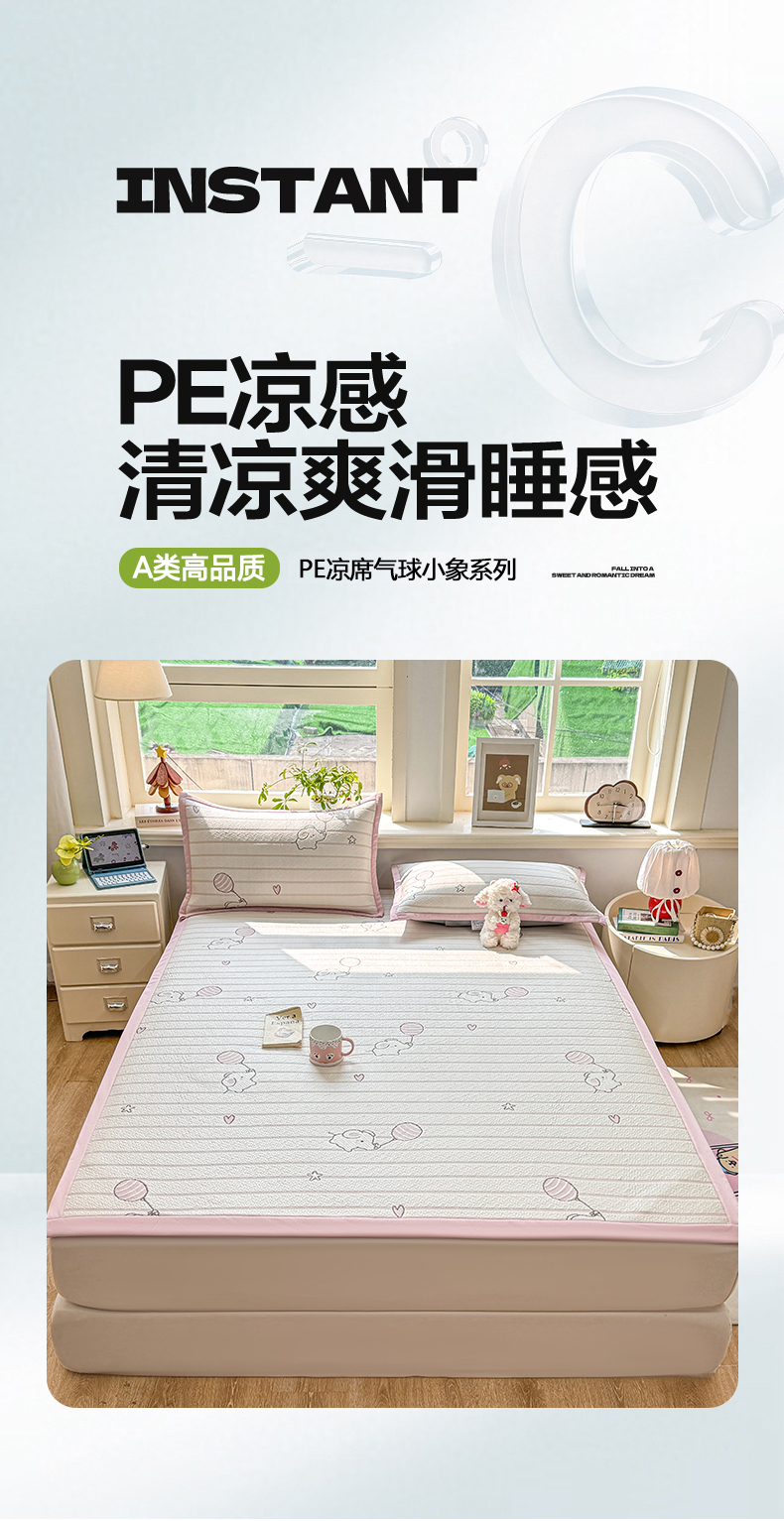 当前位置: 91家纺网 > 商品网购 > 床上用品 > 凉席 > 其他凉席 > 源舍家纺 2026新款A类PE卡通凉席三件套小红书爆款可水洗空调软席凉感值超0.25-床笠 气球小象-粉啵啵床席款