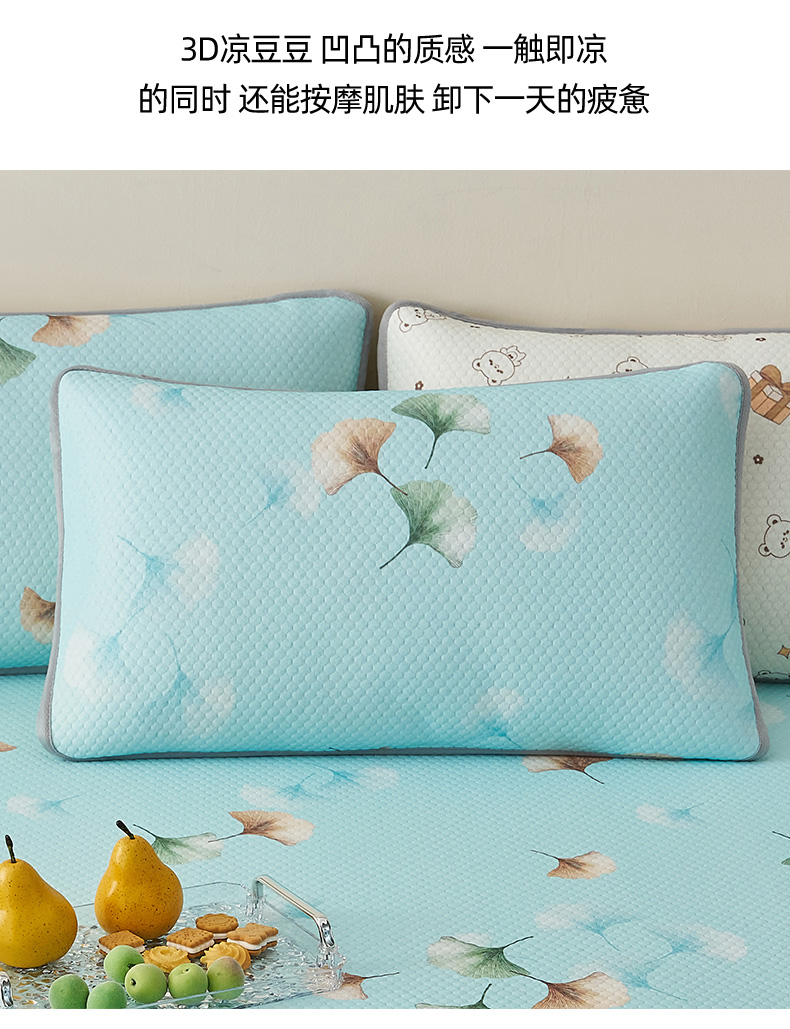 商品名称:奇丝雅 2026新款夏季A类卡通印花冰豆豆冰丝凉席枕套凉感家用可机洗单人学生宿舍48×74cm一只一对 叶语