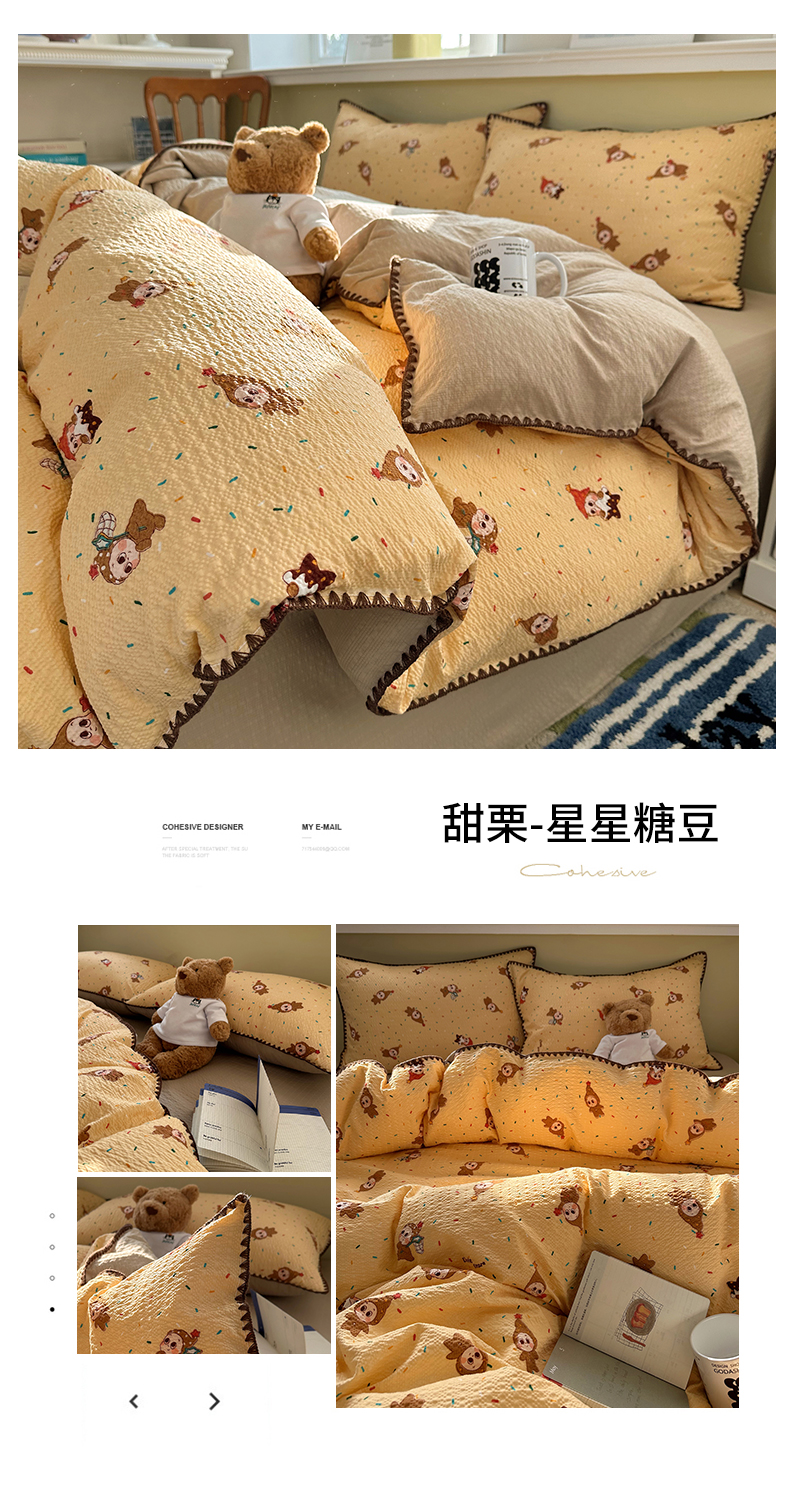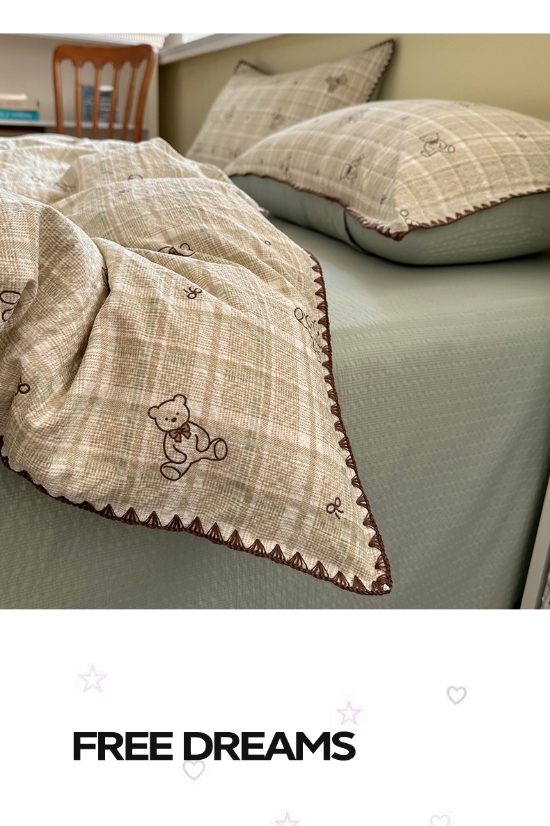 当前位置: 91家纺网 > 商品网购 > 床品套件 > 四件套 > 其它四件套 > 几禾 2026新款高品质A类110g泡芙纱甜栗贝壳边四件套 甜栗-青棕格纹熊