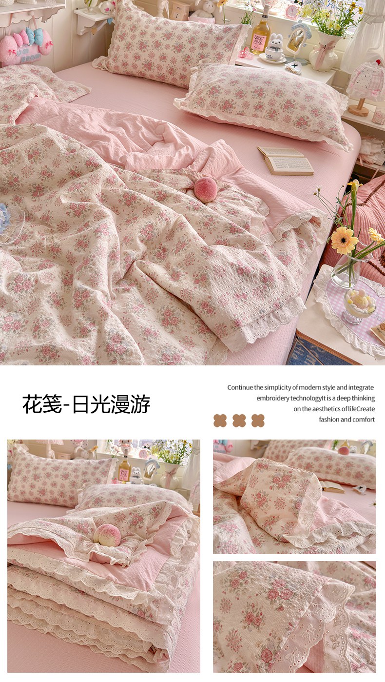 商品名称:贝扬思家纺 2026新款泡芙纱全棉蕾丝花边夏被-花笺系列(甜系花边撞入梦境,软乎乎的质感,治愈所有疲惫) 花笺-彩色花园