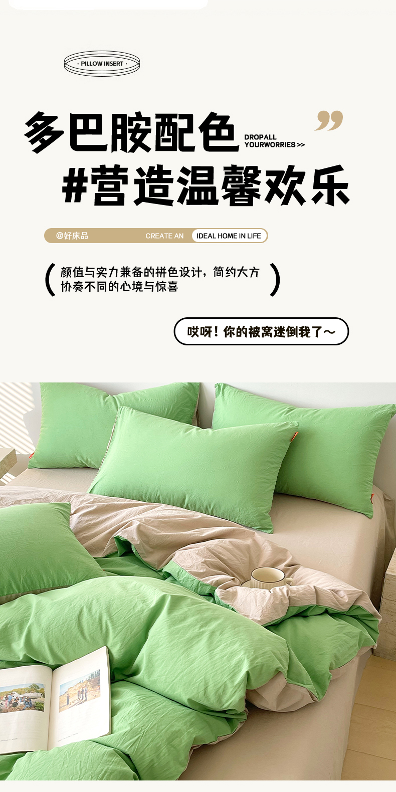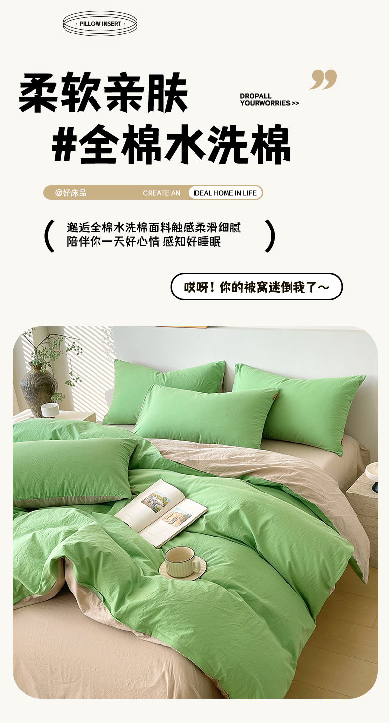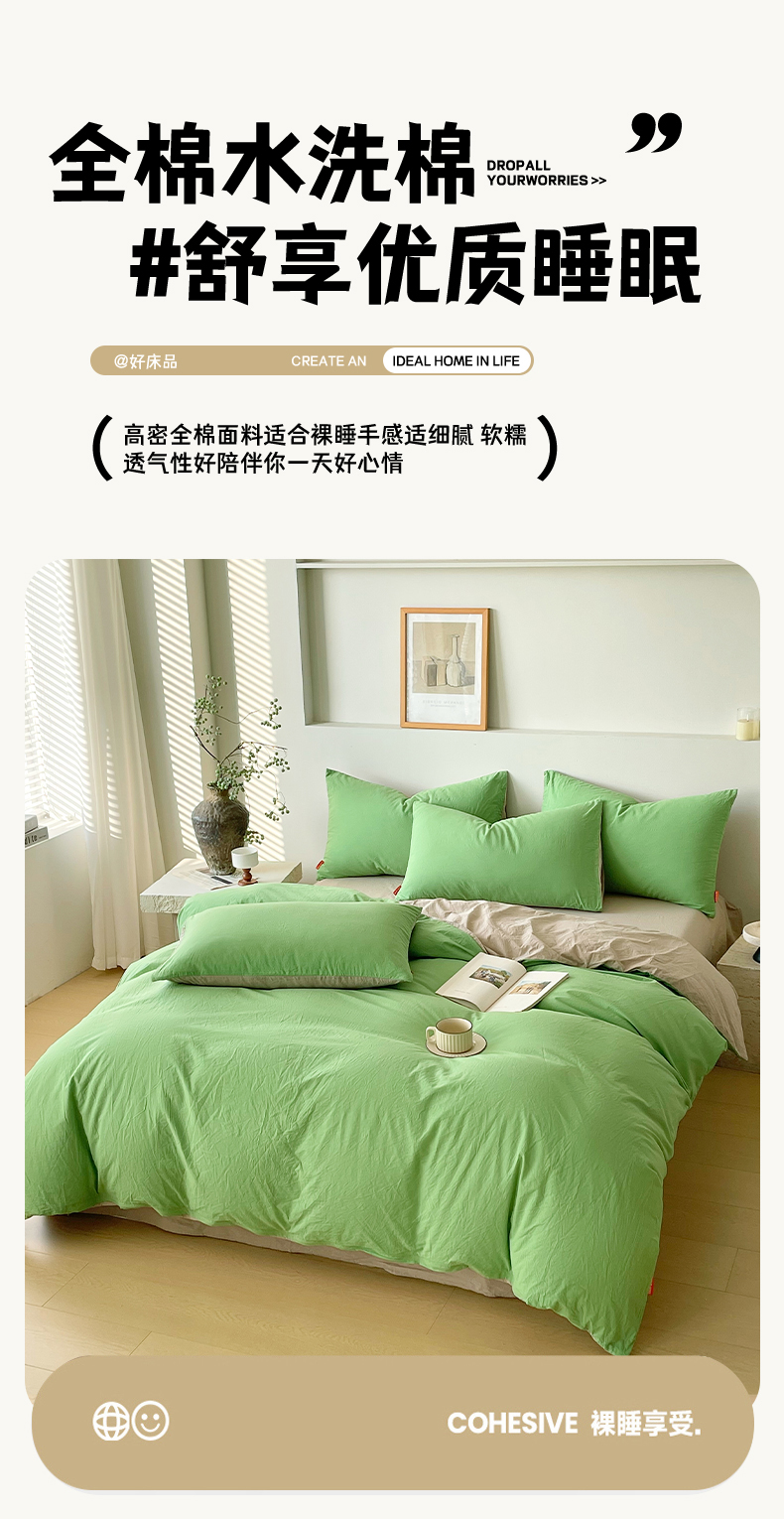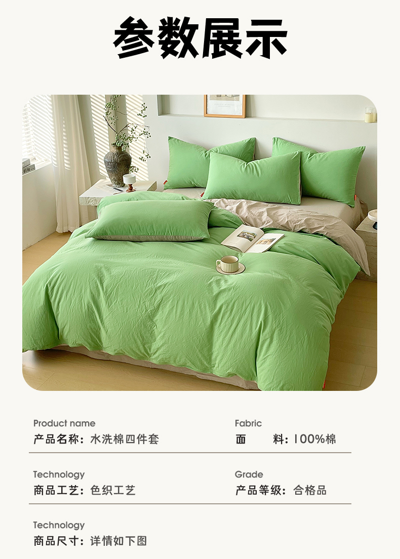 当前位置: 91家纺网 > 商品网购 > 床品套件 > 四件套 > 全棉普通四件套 > 春皖家纺 2026春夏新款双拼全棉纯棉水洗棉四件套 青草绿-卡其