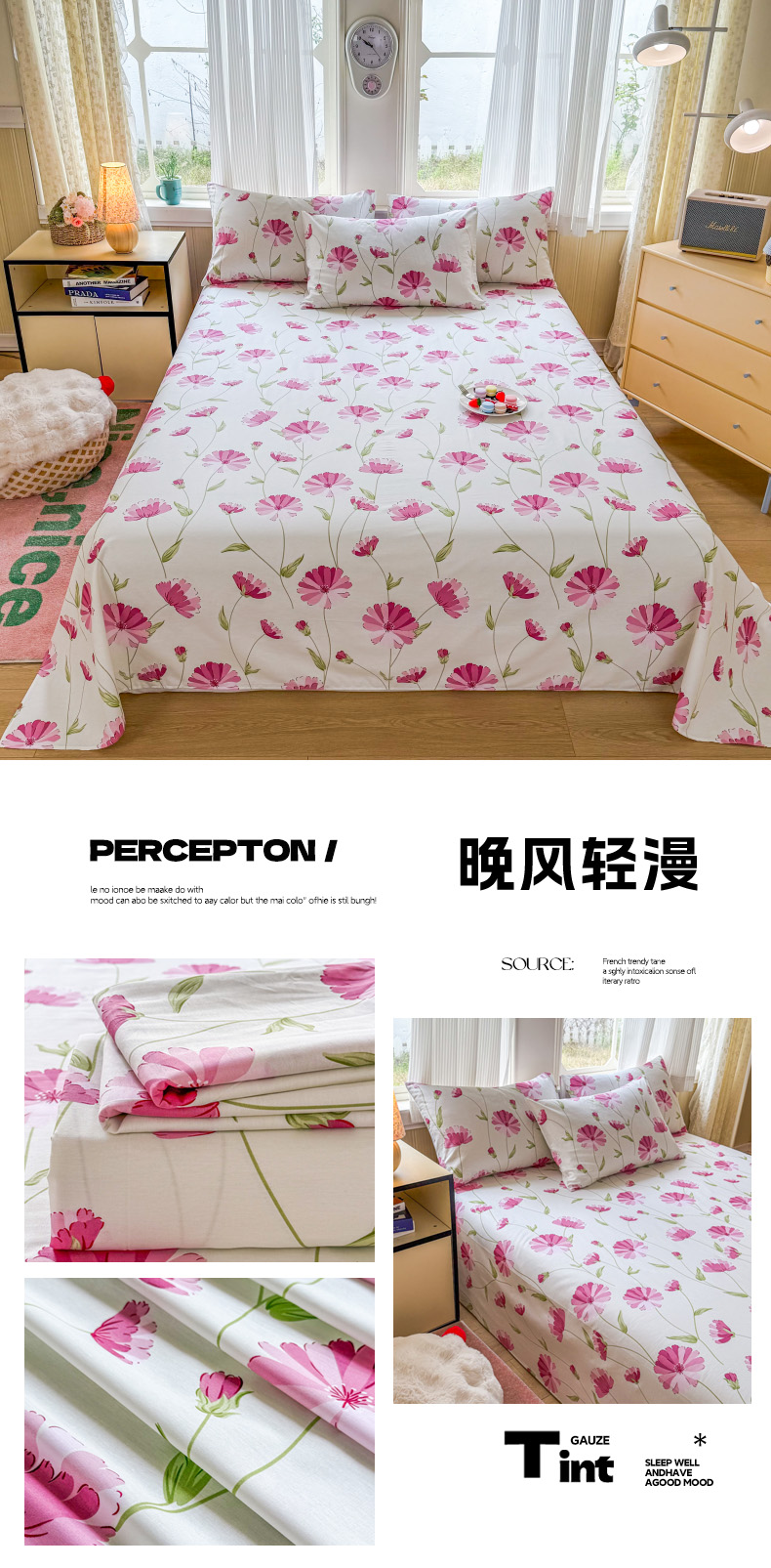 当前位置: 91家纺网 > 商品网购 > 床品套件 > 三件套 > 晨晨家纺 2026春夏新款小清新全棉纯棉印花床单三件套 波西米亚