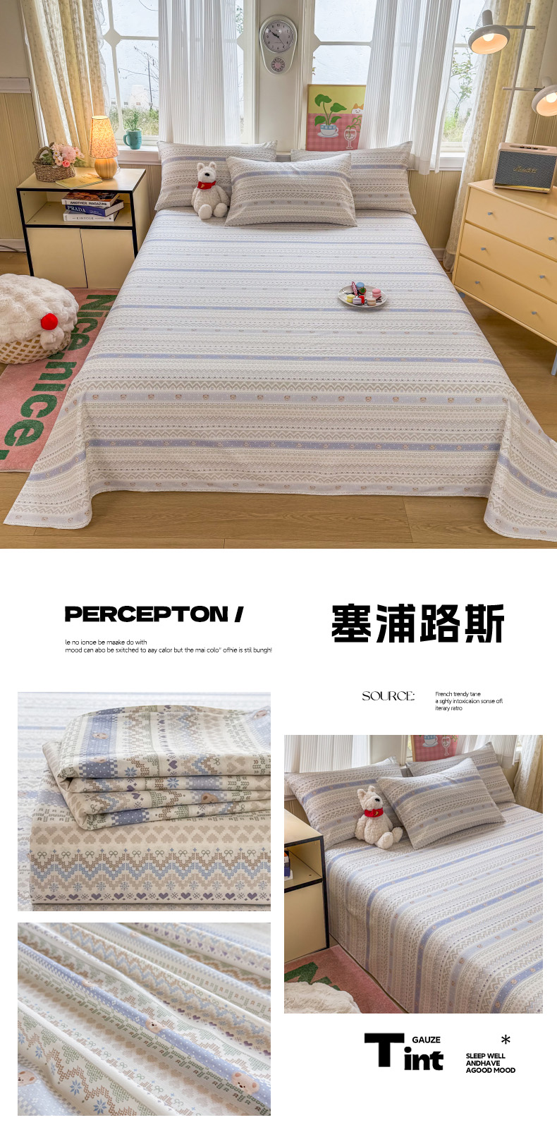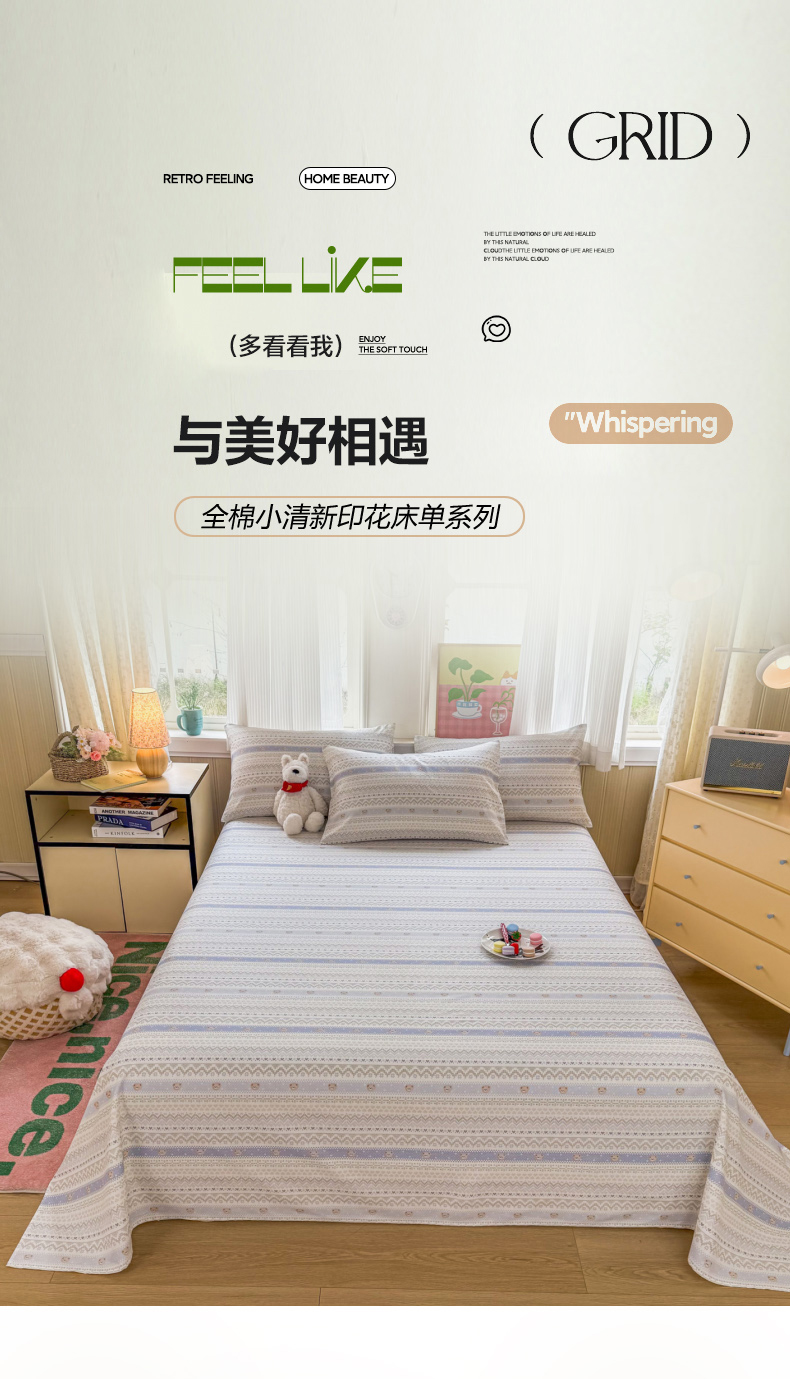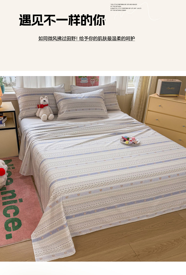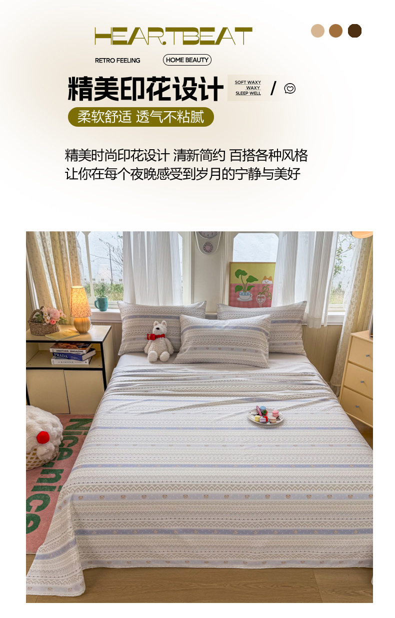 当前位置: 91家纺网 > 商品网购 > 床品套件 > 三件套 > 晨晨家纺 2026春夏新款小清新全棉纯棉印花床单三件套 塞浦路斯