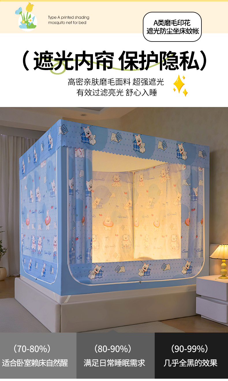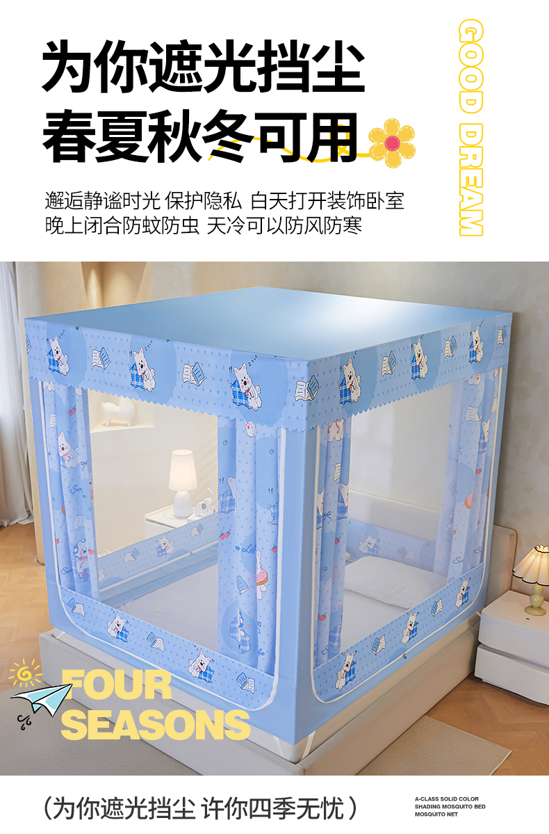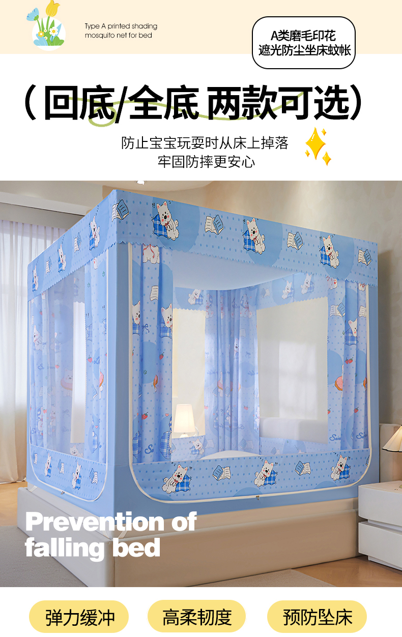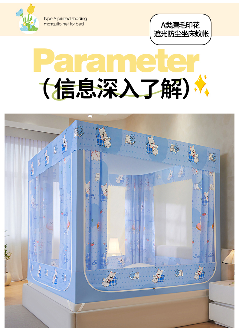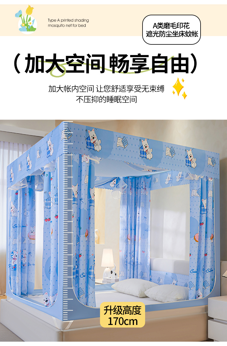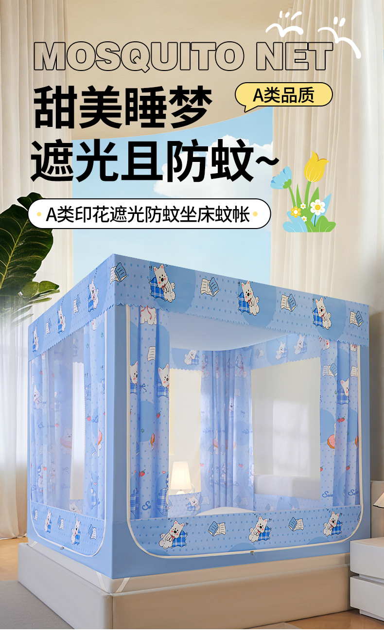 当前位置: 91家纺网 > 商品网购 > 床上用品 > 蚊帐 > 坐床式蚊帐 > 迪凡保罗蚊帐 2026新款2606专版卡通回底全底AB版遮光帘坐床蚊帐 小狗派对-带床帘