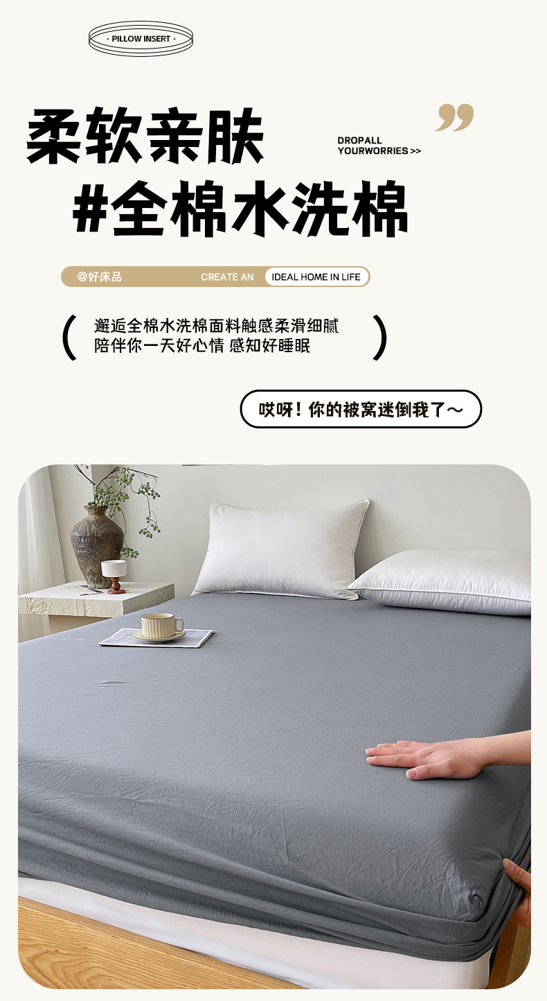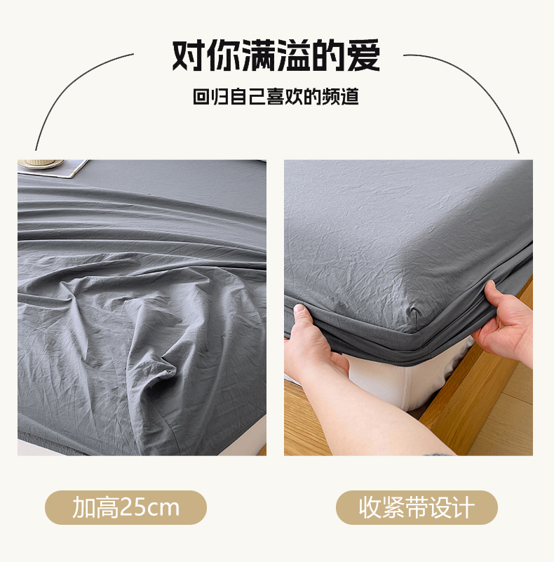 商品名称:春皖家纺 2026春夏新款双拼全棉纯棉水洗棉单床笠 床笠单件 素雅墨灰