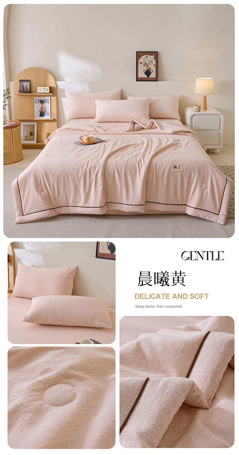 (总)顺兴家居 2026新款提花色织水洗麻夏被夏凉被空调被四件套,色织-湖水蓝,色织-晨曦黄,色织-玫瑰粉,色织-抹茶,色织-牛仔蓝,色织-葡萄青,色织-烟灰