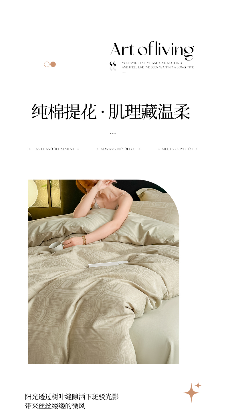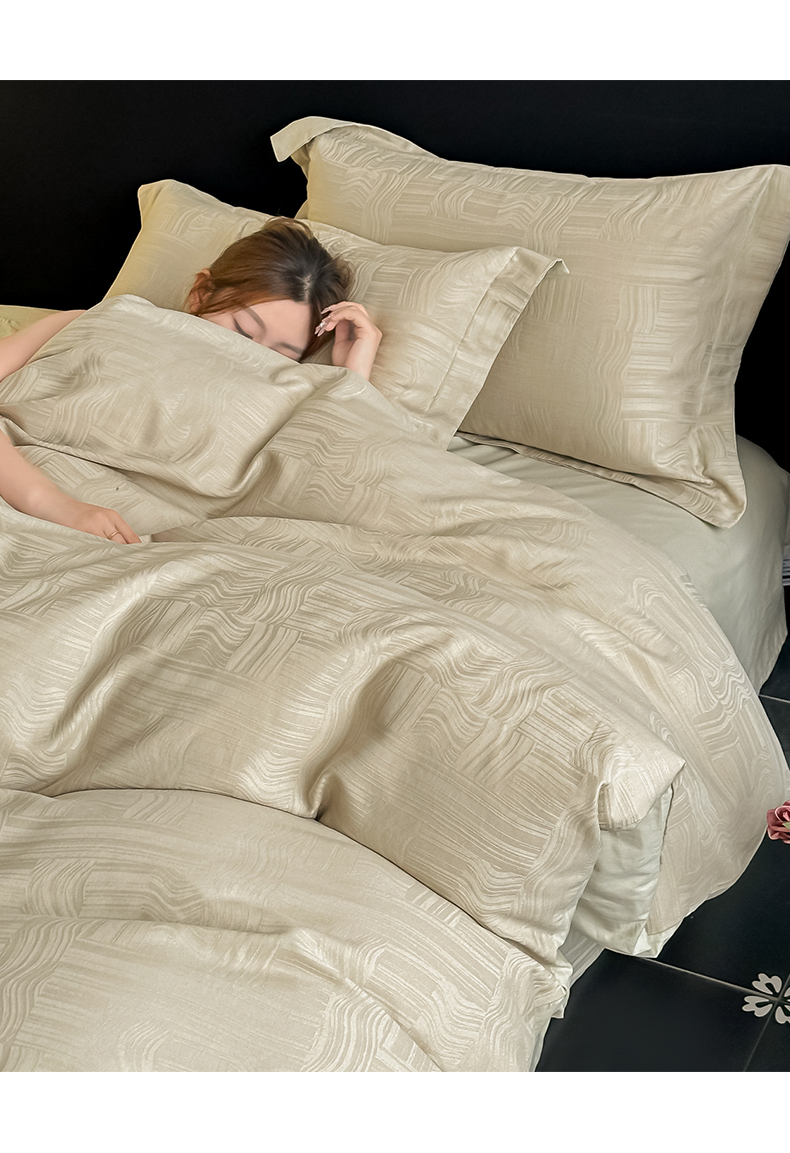 当前位置: 91家纺网 > 商品网购 > 床品套件 > 四件套 > 全棉普通四件套 > 宅家居 2026新款轻奢A类60支立体浮雕长绒棉纯棉提花贡缎全棉四件套光泽绸缎感三件套 凯迪雅-香槟绿