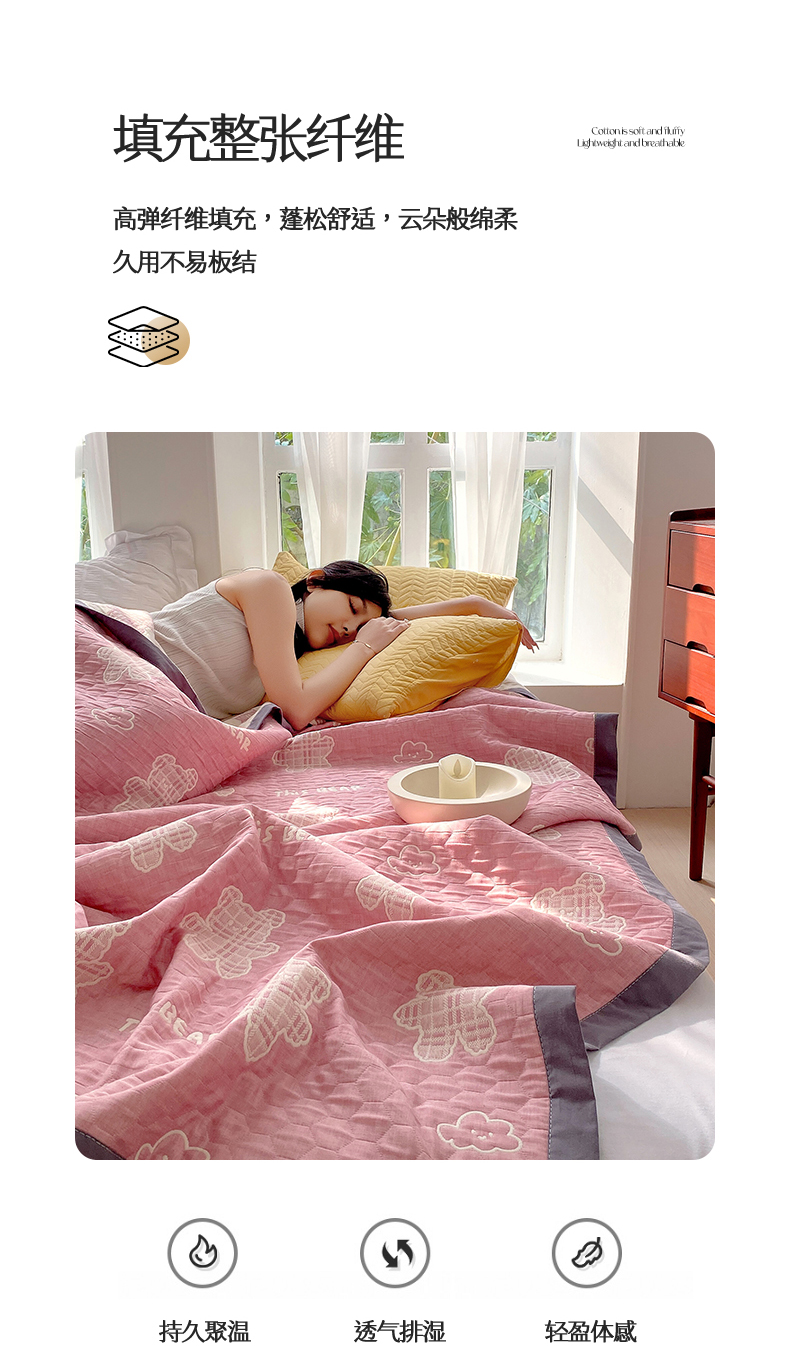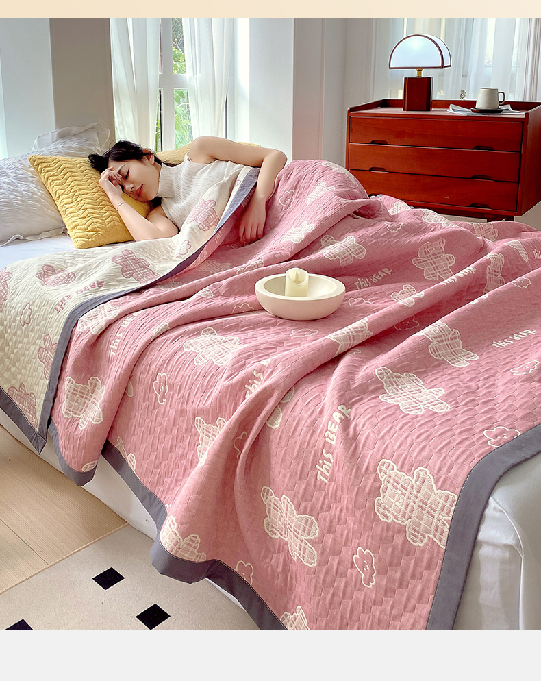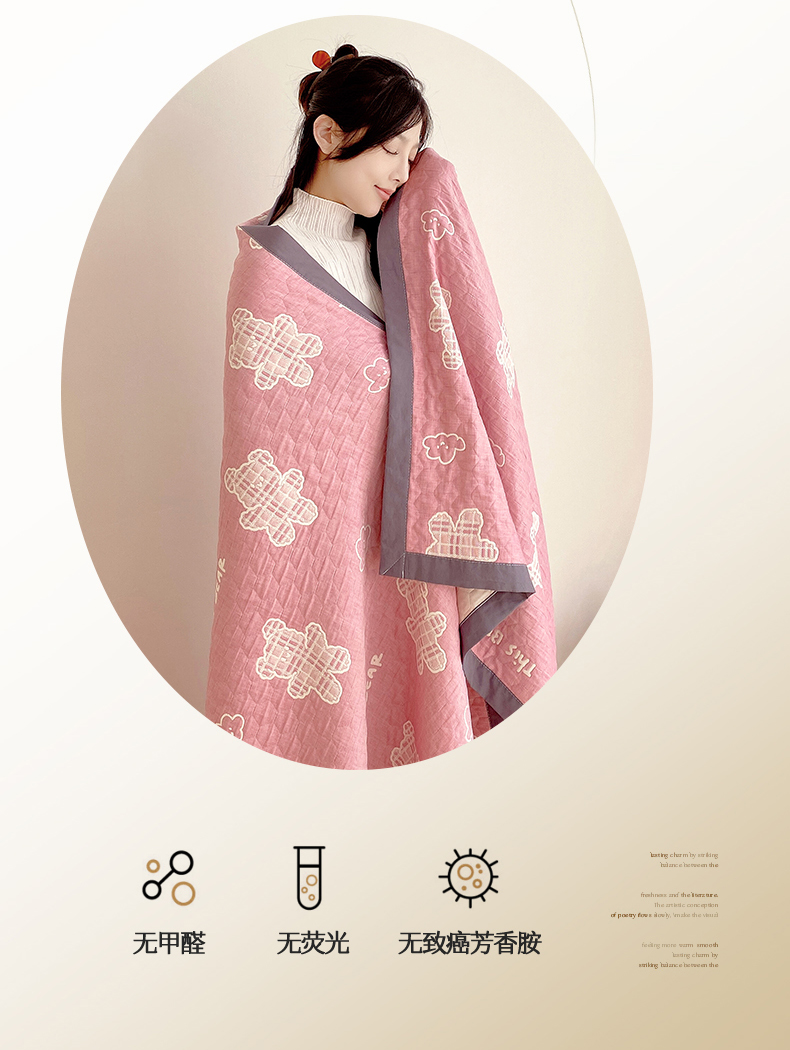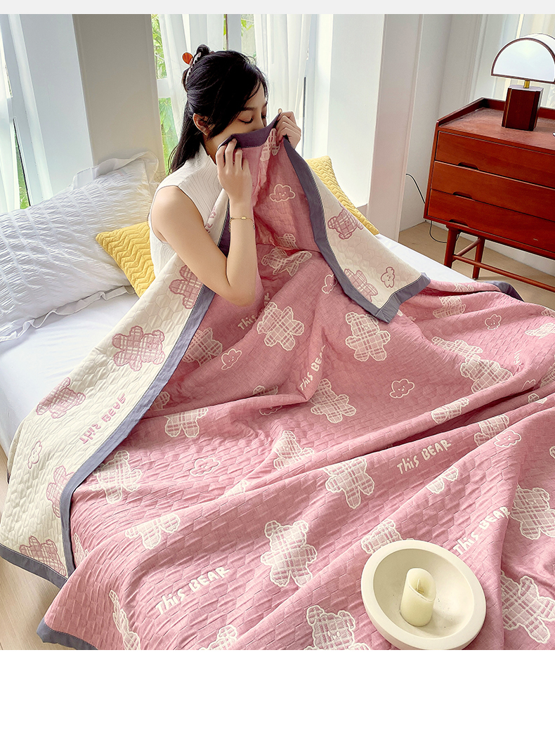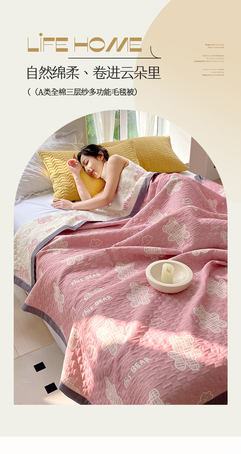 商品名称:兄弟坊 2026新款A类全棉三层纱多功能毛巾被夏被夏凉被(盖毯床单夏被) 云朵小熊-粉