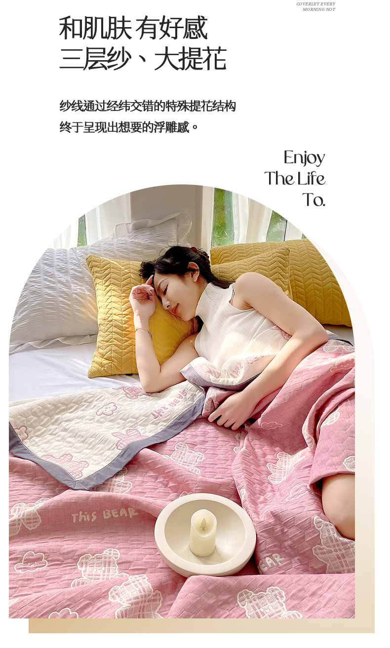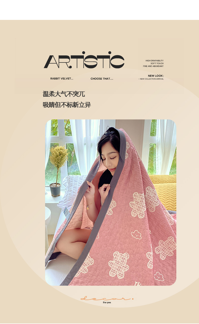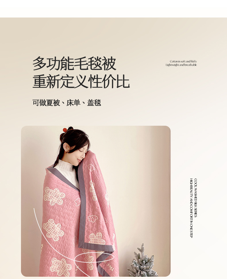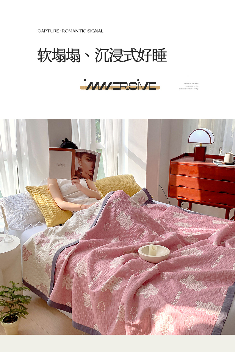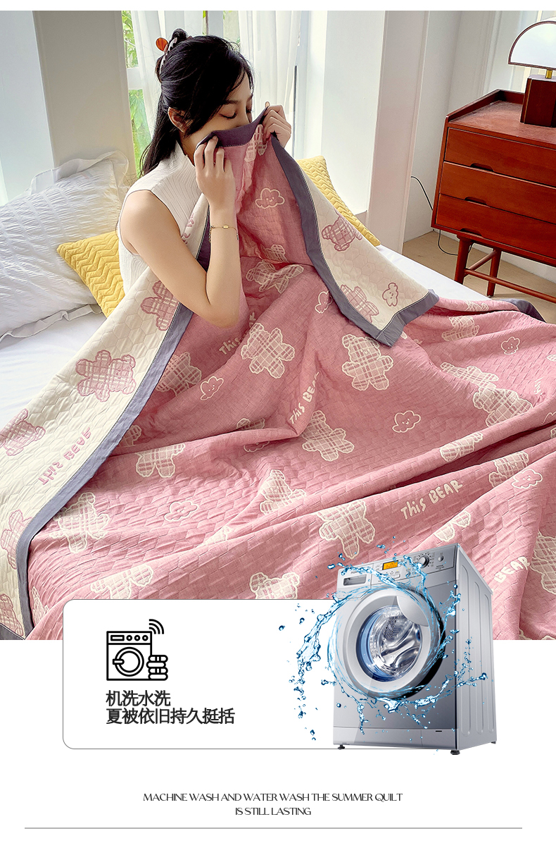 商品名称:兄弟坊 2026新款A类全棉三层纱多功能毛巾被夏被夏凉被(盖毯床单夏被) 云朵小熊-粉