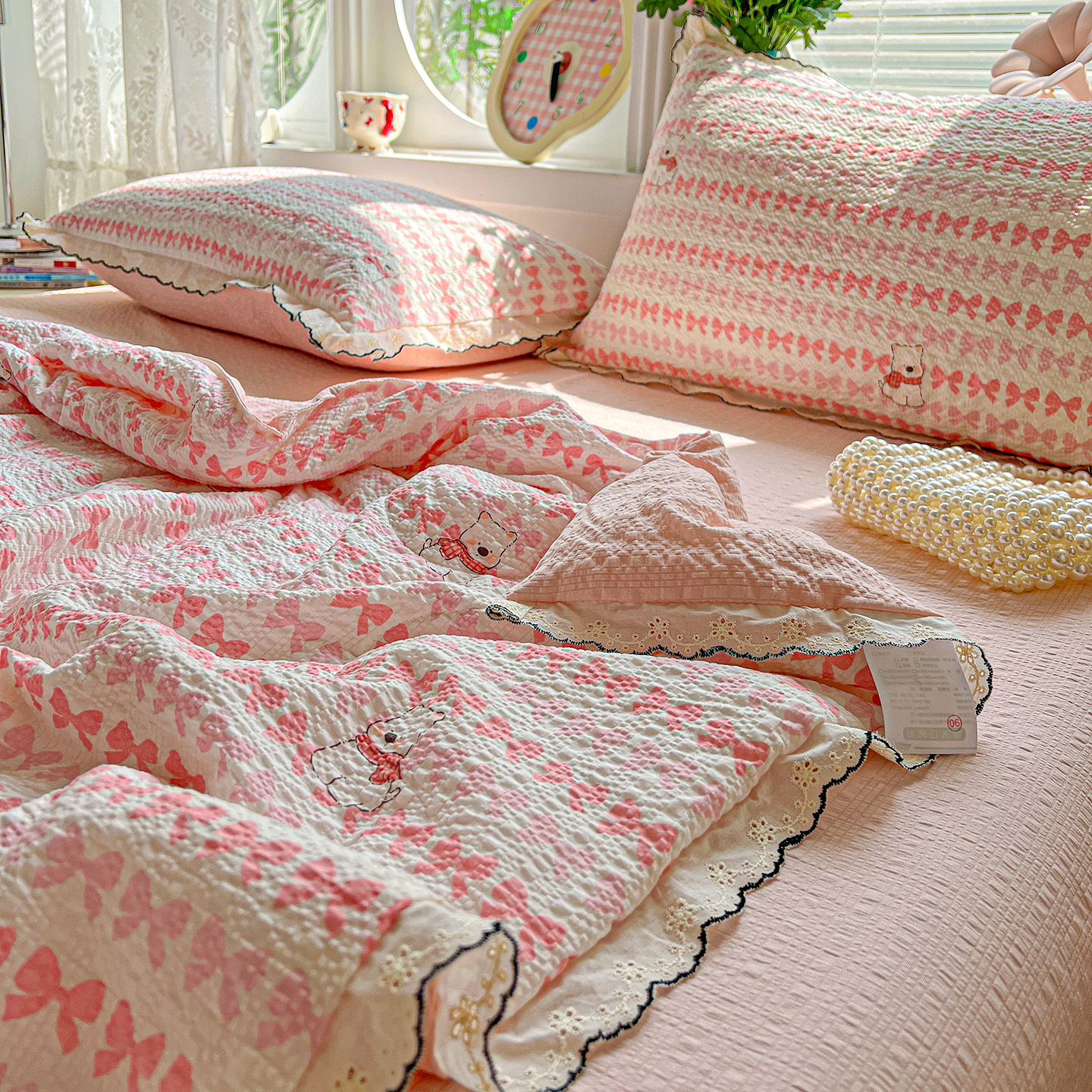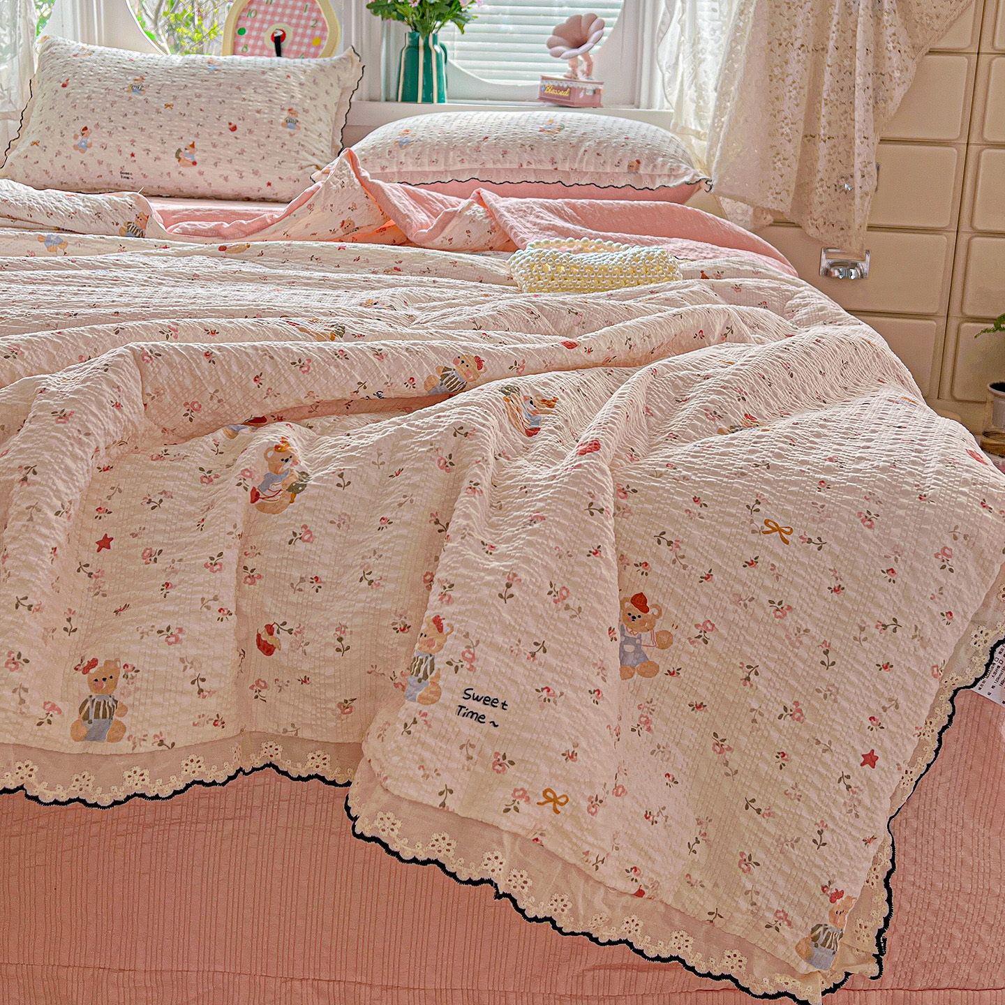 (总)2026新款云感皱皱纱全棉花边款夏被四件套,百福兰,春天里,春晓,豆蔻,蝴蝶梦,可颂,兰黛,山野栀子,素颜,太妃糖,微凉薄荷,心动,遇见,芝士奶酪,紫爱心,紫苏,白茶绿,初恋,蜡笔画,莱茵河畔,桃花诺,小黑兔,春不晚,春日小熊,可颂,陌上花开,莫奈,若欢-绿,若欢紫色,舒芙蕾,田园拾趣-黄,兔小姐,郁金香小兔,波点小兔粉,波点小兔兰,花园兔,情人节,山野栀子,十里桃花粉,十里桃花紫,舒芙蕾,太妃糖,夏天,运动健将熊, 白月光,缤纷几何,格格西高地,海盐蓝小格,黎漫,木槿绿,奶油泡芙,欧若拉,桃夭,甜茶,小晴天,芋泥紫小格,紫色蝴蝶结