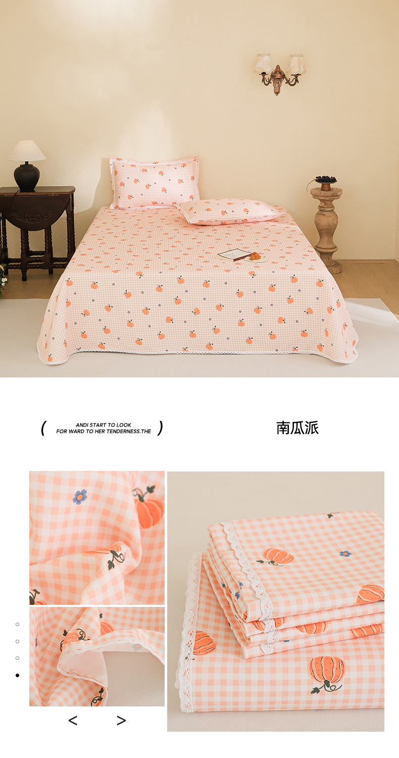 商品名称:慕绸家纺(原萌宝老粗布厂家) 2026新款原棉细纱工艺款亲肤柔软老粗布床单凉席席子春夏热门款-直播热卖圆角花边款 南瓜派