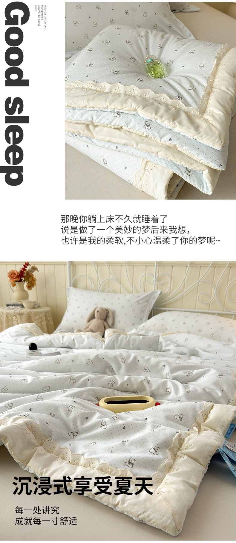 商品名称:景眠 2026春夏新款花边款大豆夏被夏凉被空调被 淘气小熊