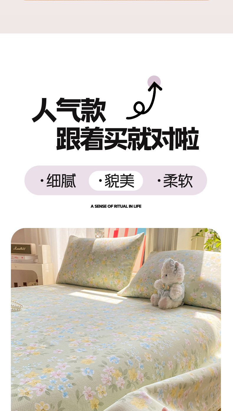 • 91家纺网 家纺一手货源 找家纺 (总)晓时候 20226新款细纱原棉老粗布床单印花床单单件凉席三件套,星愿萌犬,橙意满满,春日碎花,粉格蝴蝶结,蝴蝶结-灰,欢乐小狗,萌趣小熊,甜心汪-蓝,童趣西高地,小美冰激凌,徐徐花开,紫韵