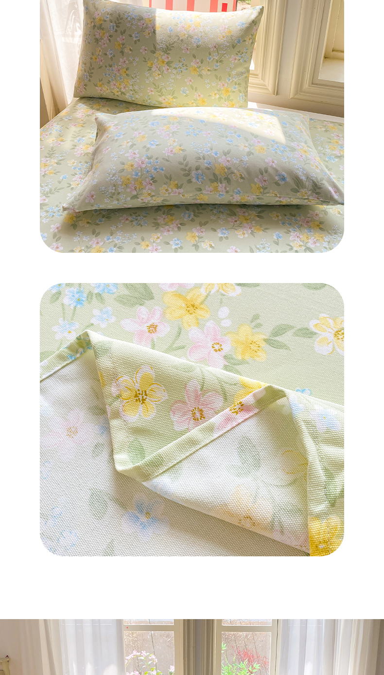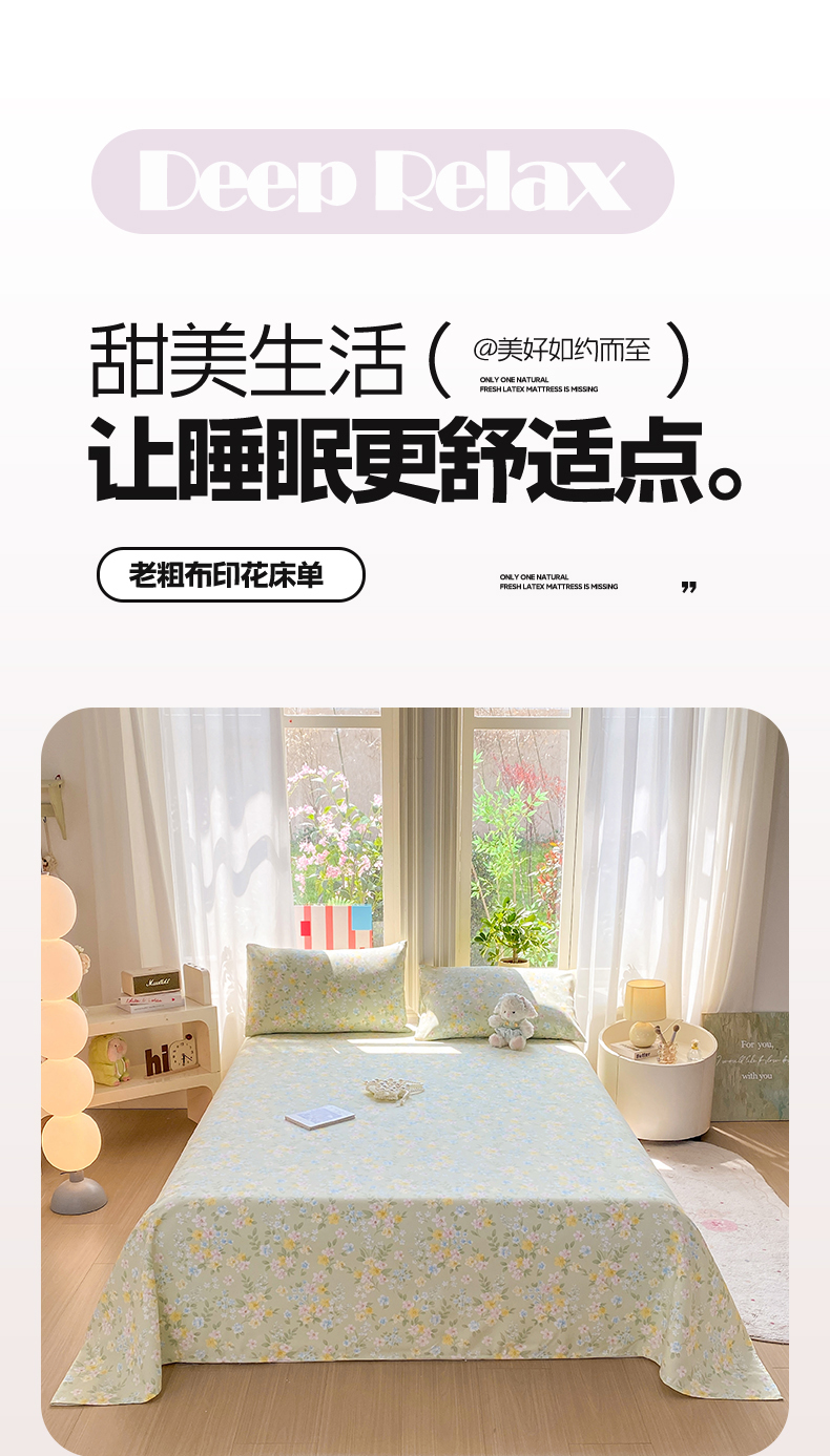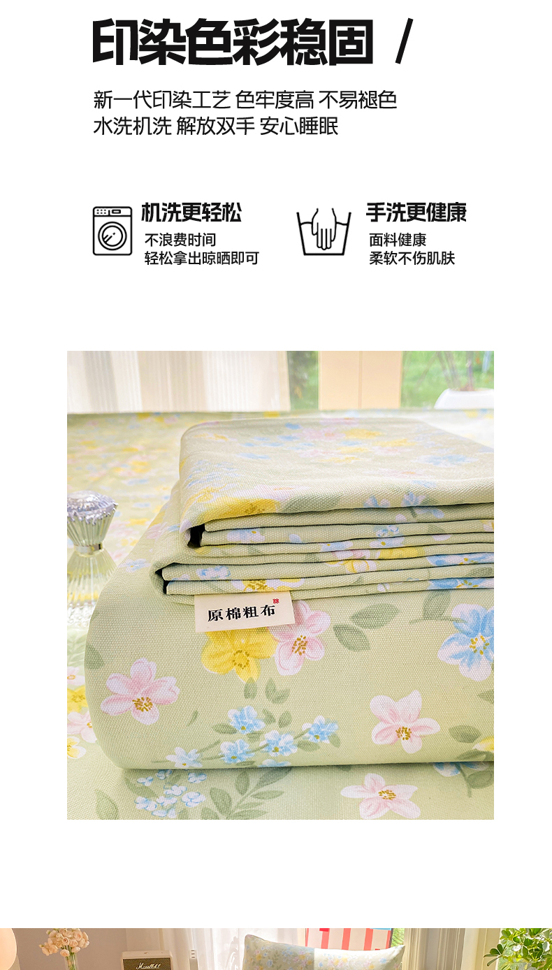 • 91家纺网 家纺一手货源 找家纺 晓时候 20226新款细纱原棉老粗布床单印花床单单件凉席三件套 徐徐花开