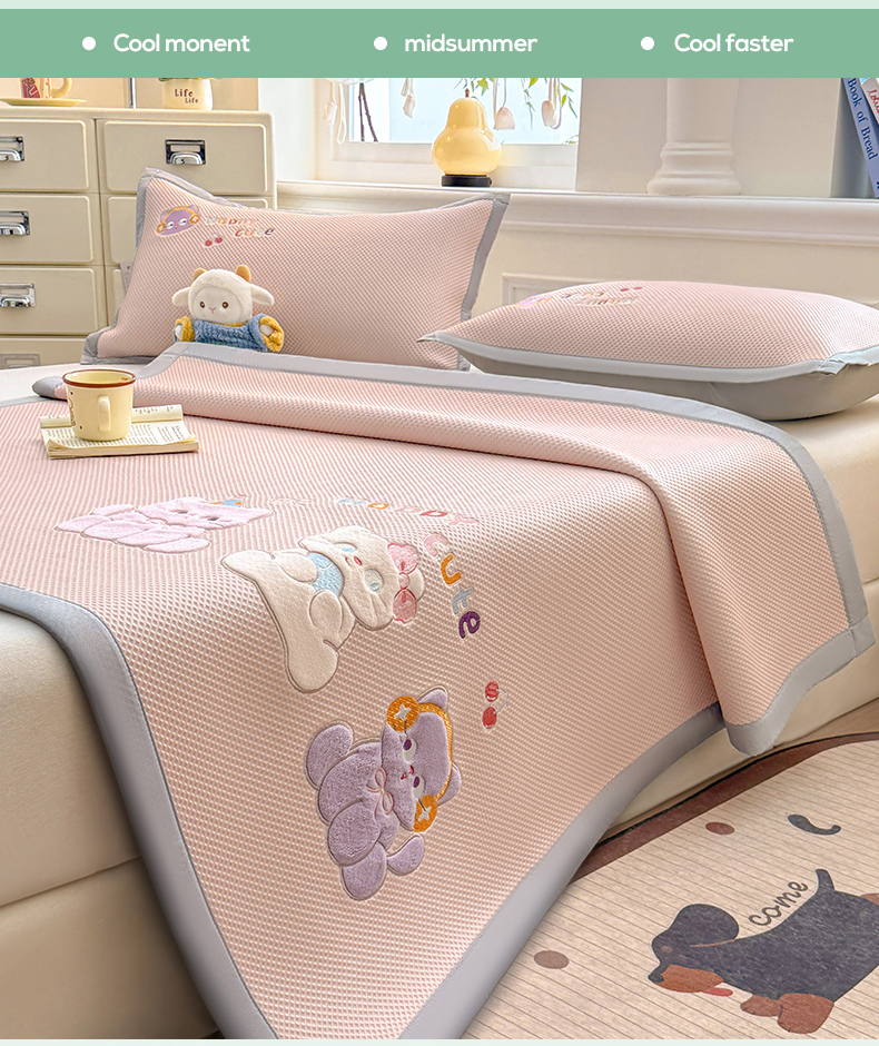 商品名称:布凡家居 2026新款高端A类PE高分子冰丝凉席卡通贴布凉席冰豆豆软凉席 甜点美食-粉