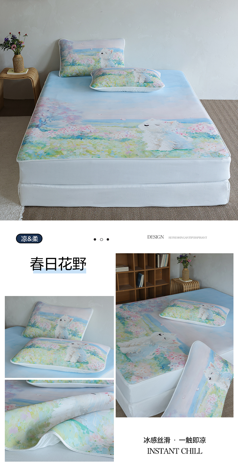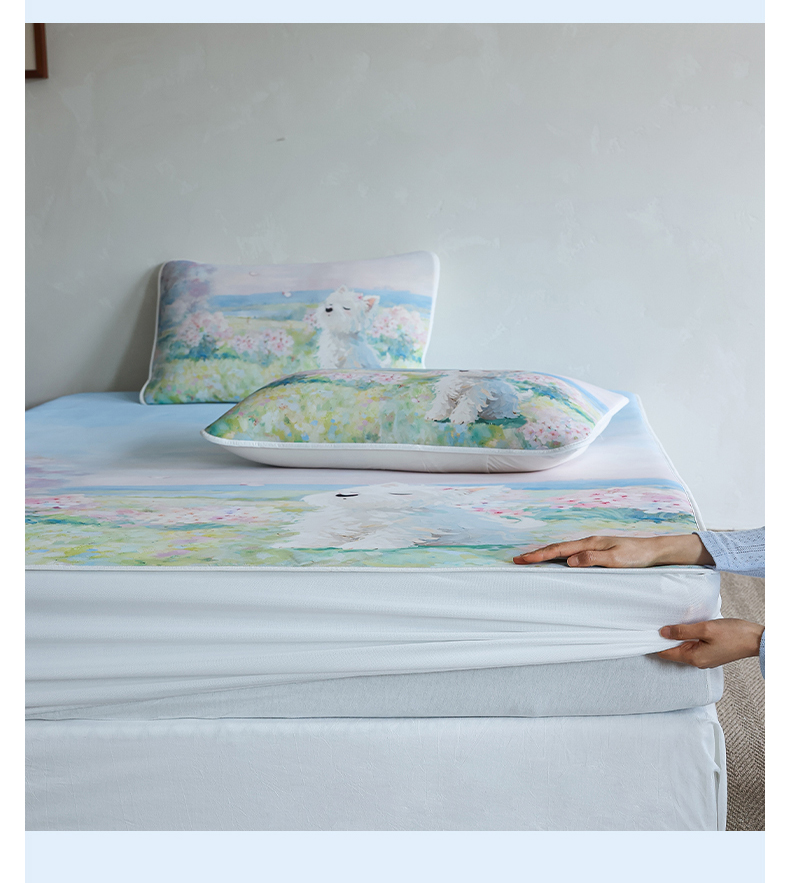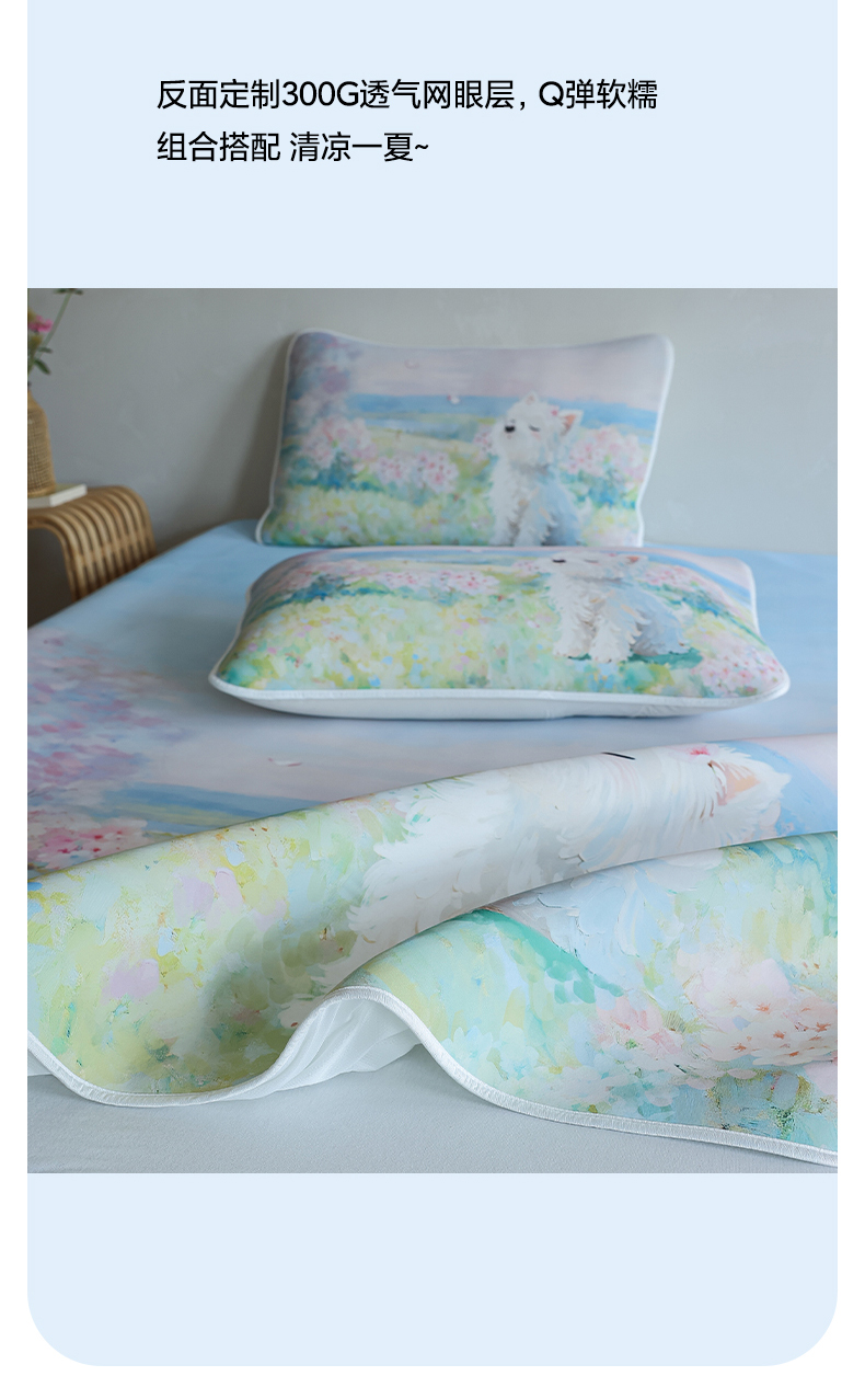 商品名称:三味舒屋 2026新款【四季漫游】印花冰感丝软凉席凉垫 春日花野