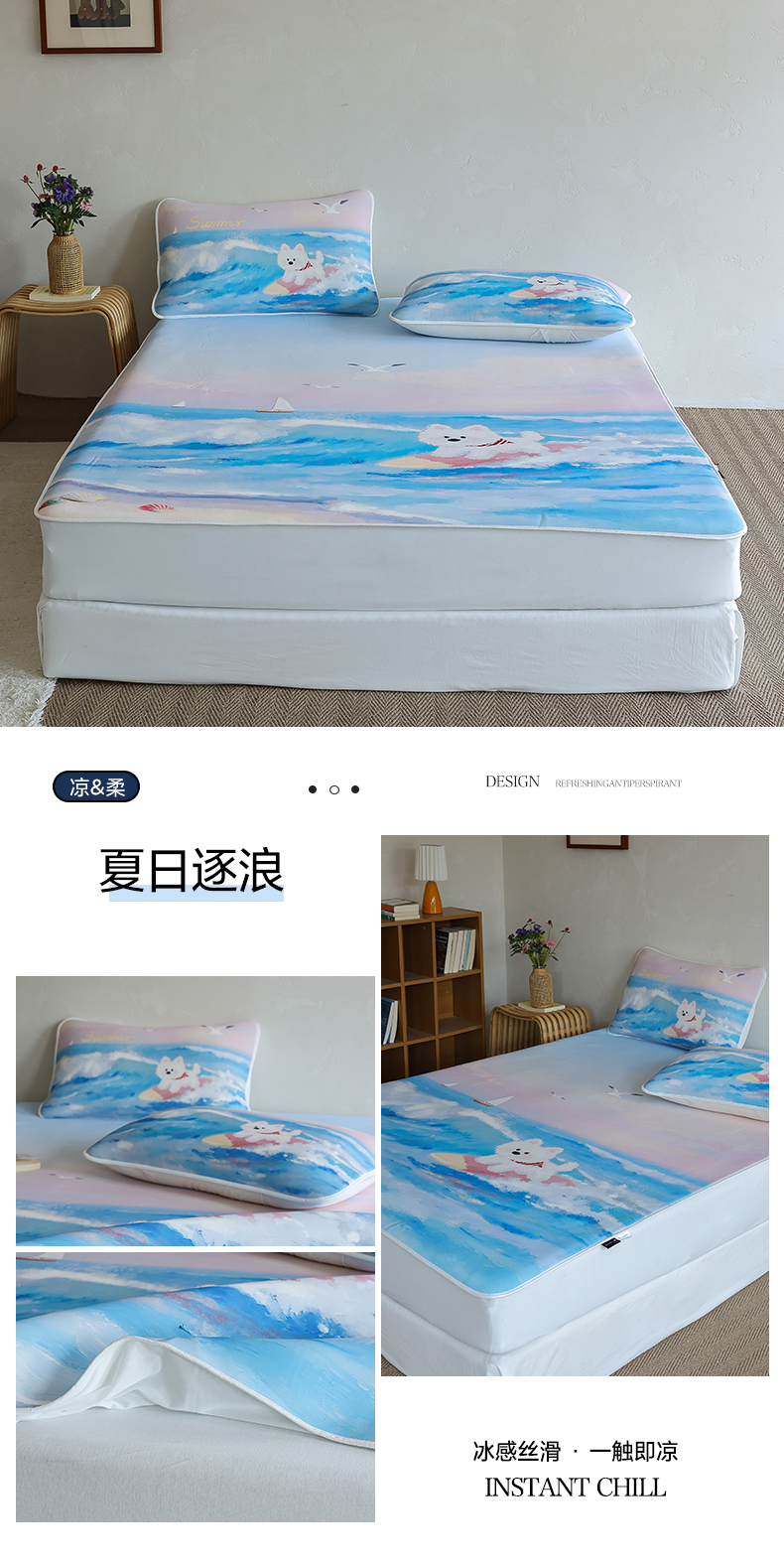 (总)三味舒屋 2026新款 凉感抗菌防螨印花冰丝养生席(新升级7A抗菌),花非花 床席,花非花 床笠,雾非雾 床席,雾非雾 床笠