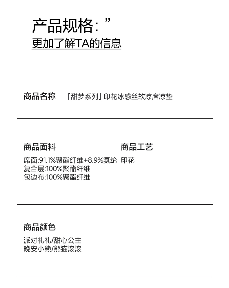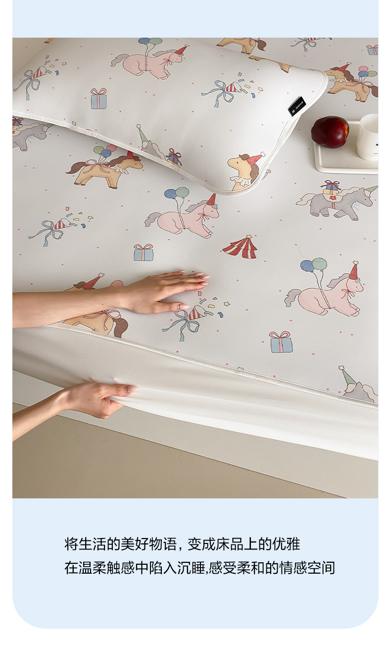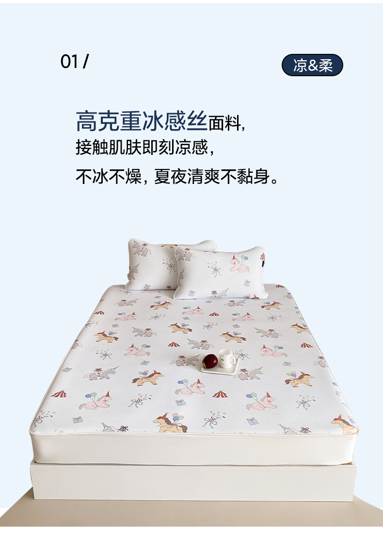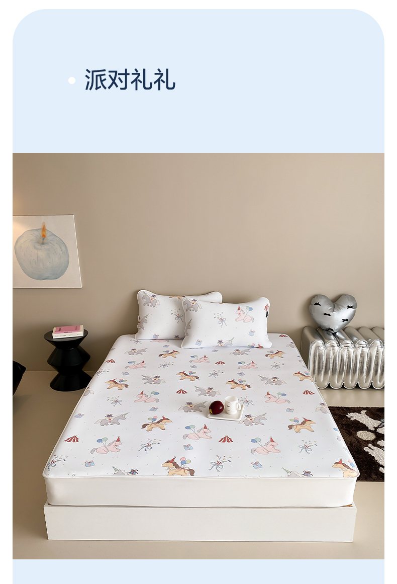 商品名称:三味舒屋 2026新款【甜梦派对】印花凉感丝软凉席凉垫(床笠款) 派对礼礼