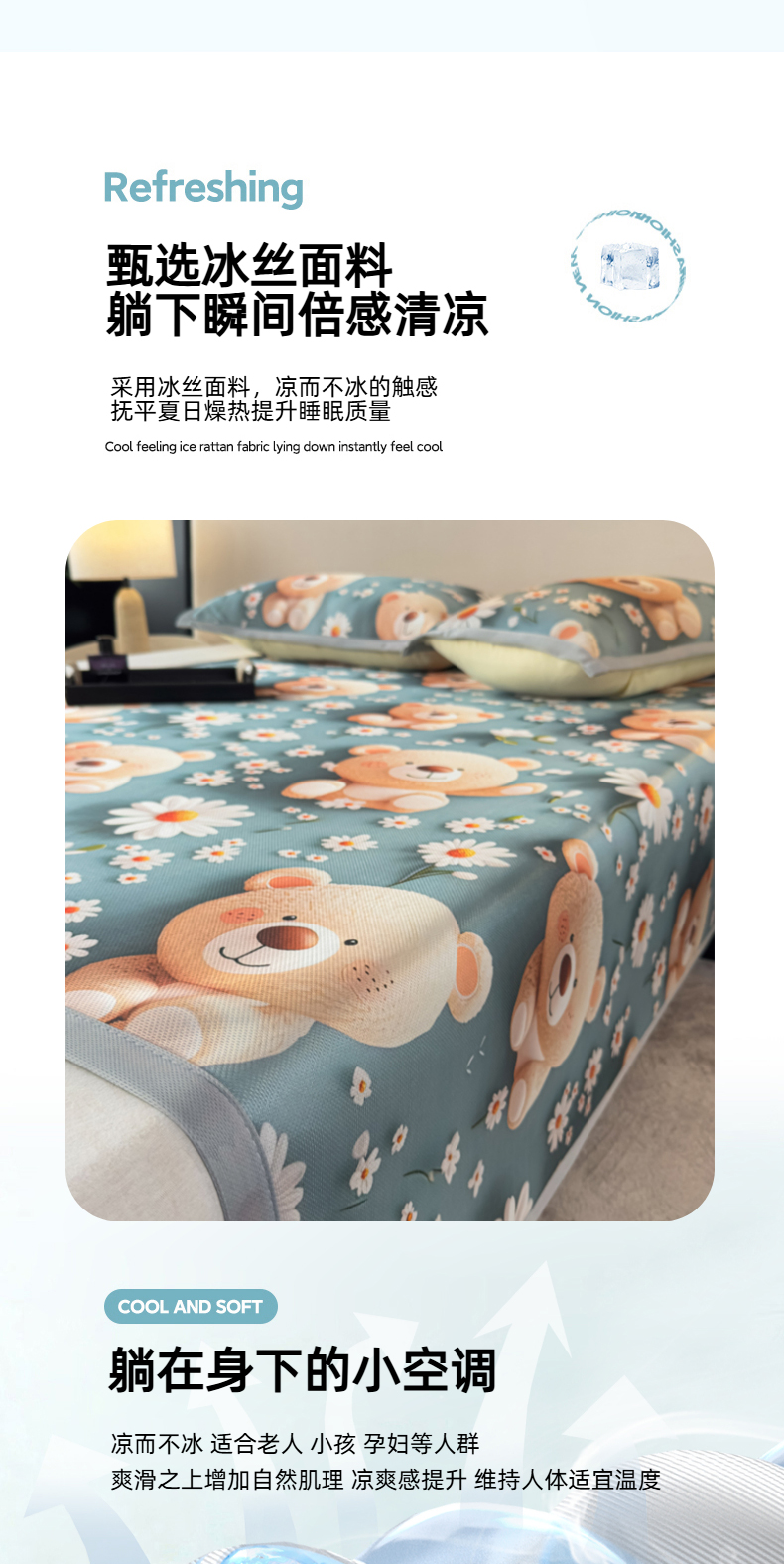 当前位置: 91家纺网 > 商品网购 > 床上用品 > 凉席 > 冰丝席 > 春寻家纺 2026新款5D印花冰丝席复合三明治款凉席席子 元气小熊-蓝