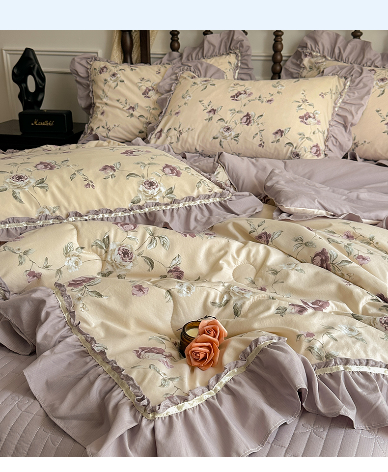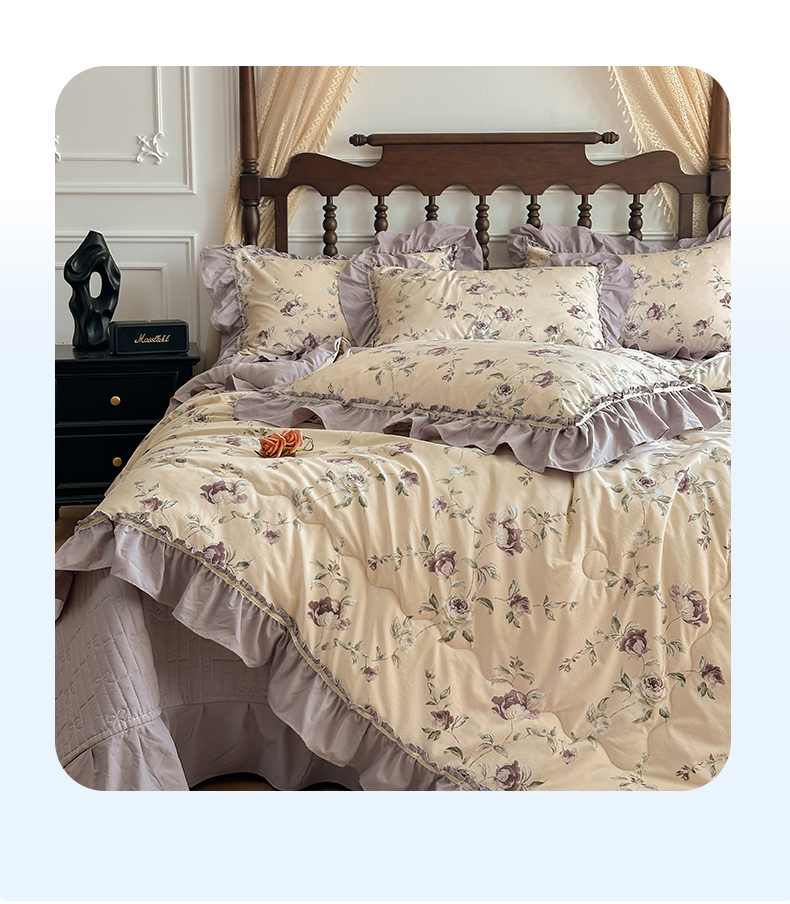 (总)星光耀 2026新款A类高克重斜纹云柔棉床盖四件套,茶礼·远山紫,茶礼·梅子红,边庭,禅弥,花棠,岚语