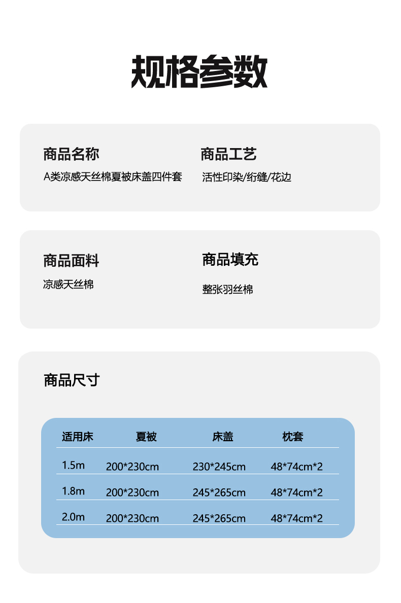 商品名称:星光耀 2026新款A类凉感天丝棉夏被床盖四件套 安妮