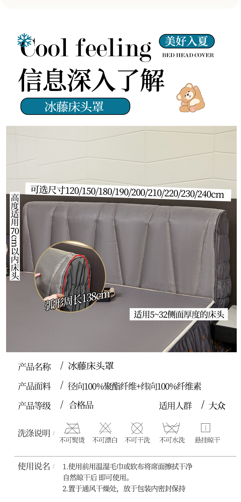 当前位置: 91家纺网 > 商品网购 > 居家布艺 > 防尘保护罩 > 其它罩类/套类 > 情恒家纺 2026新款冰藤加厚双面全包床头罩 皇家-高级灰 2.4米