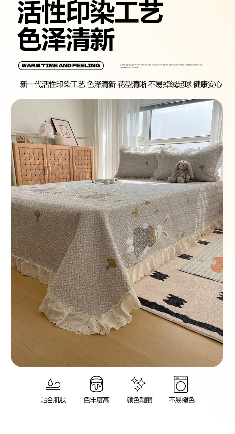 • 91家纺网 家纺一手货源 找家纺 悦织湾家纺 2026新款印花泡芙棉花边床盖三件套春秋夏秋床罩款三件套轻奢时尚 花边-花样年华