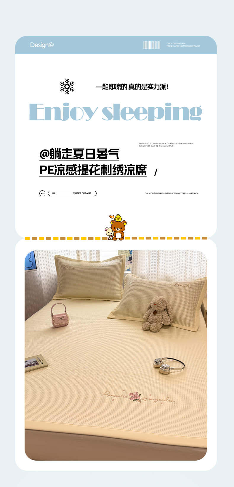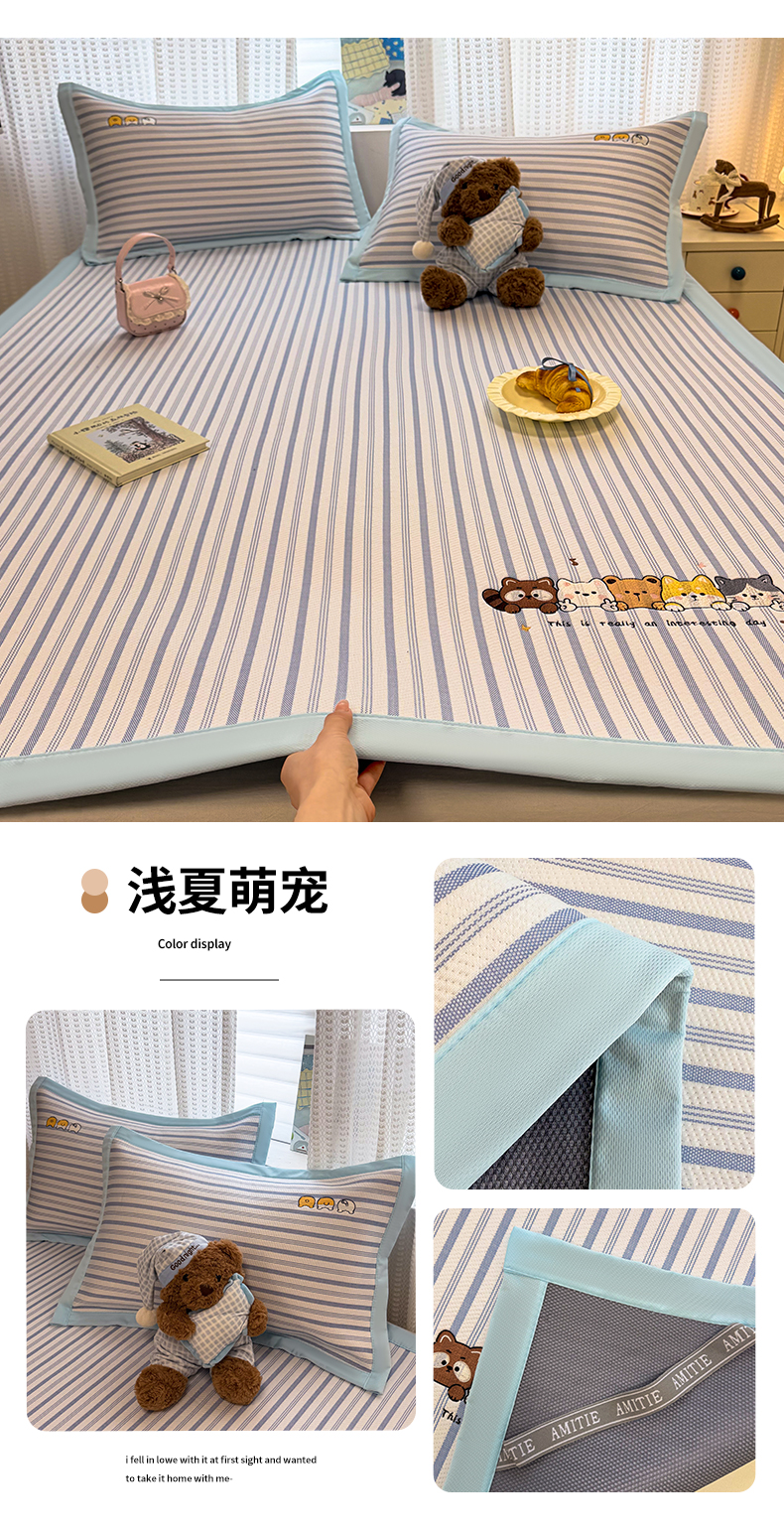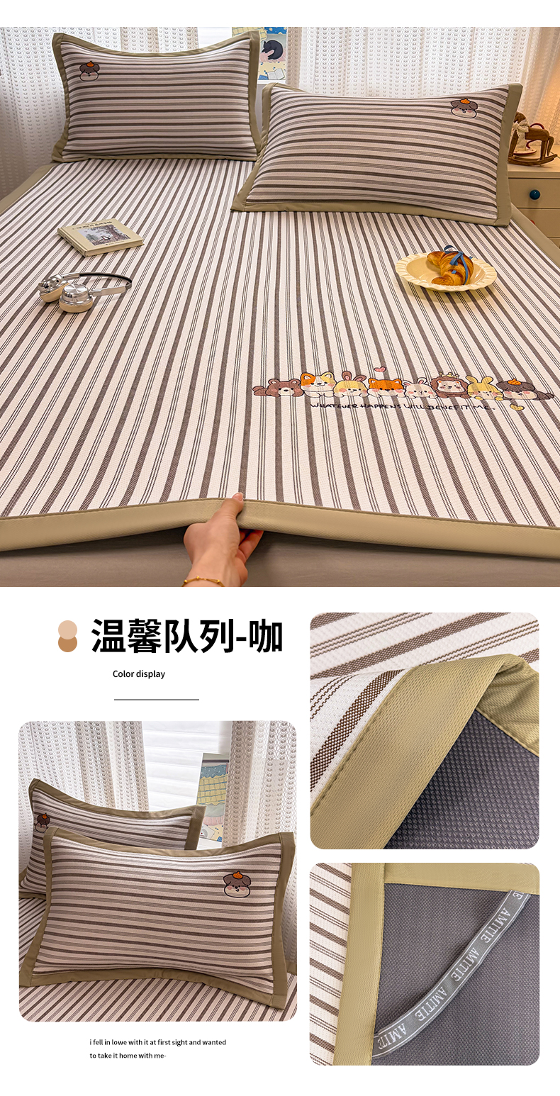 (总)蓝邻家纺 2026春夏新款PE提花贴布绣凉席席子-场景一,萌跃-粉,萌跃-咖,甜帚,笑果,星绒,组合图仅供展示不可下单