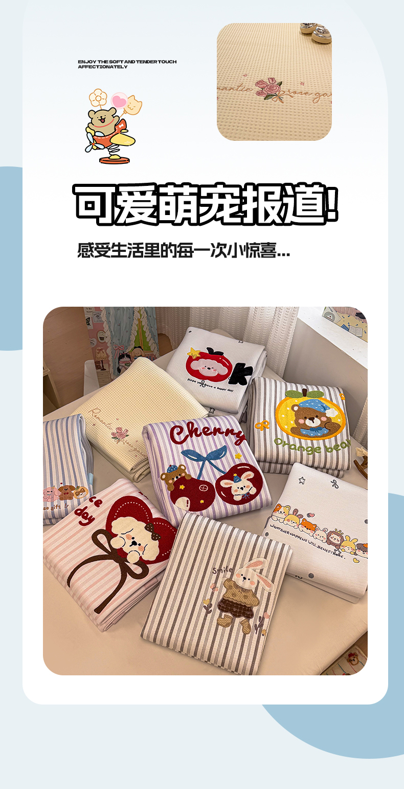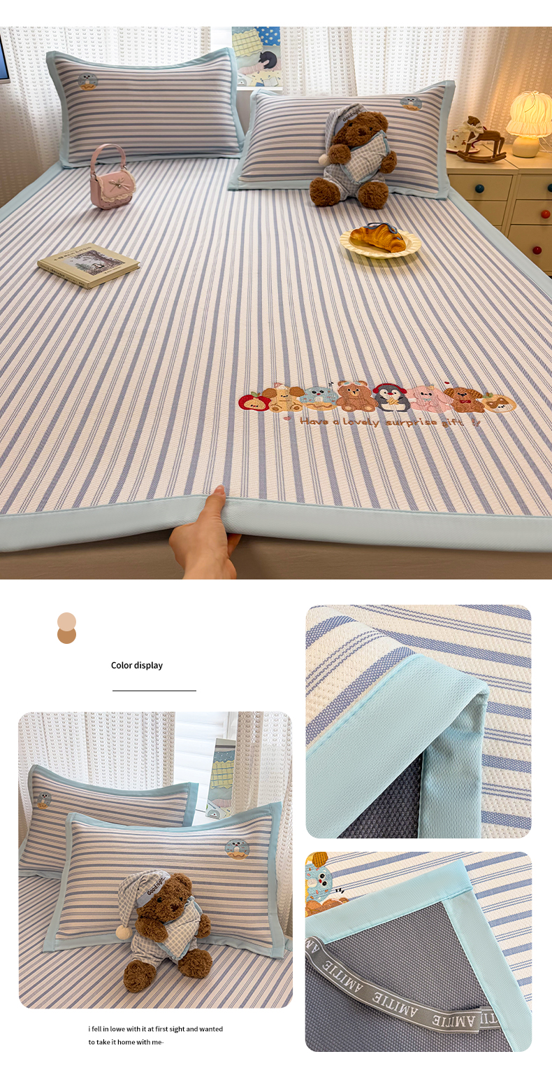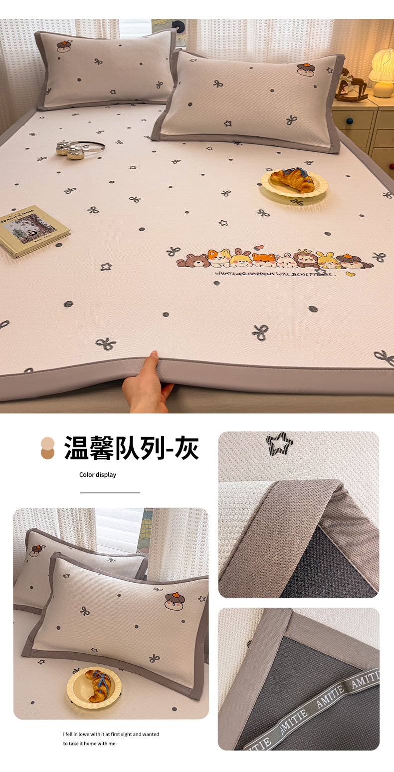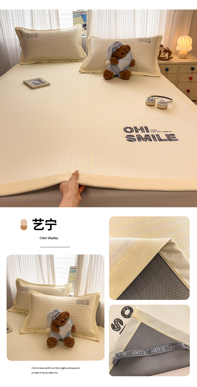(总)蓝邻家纺 2026春夏新款PE提花贴布绣凉席席子-场景一,萌跃-粉,萌跃-咖,甜帚,笑果,星绒,组合图仅供展示不可下单
