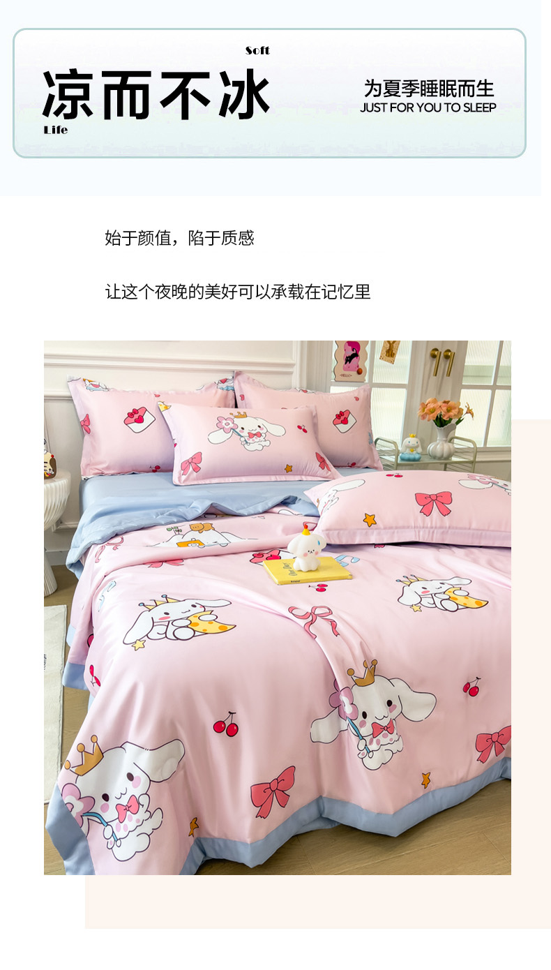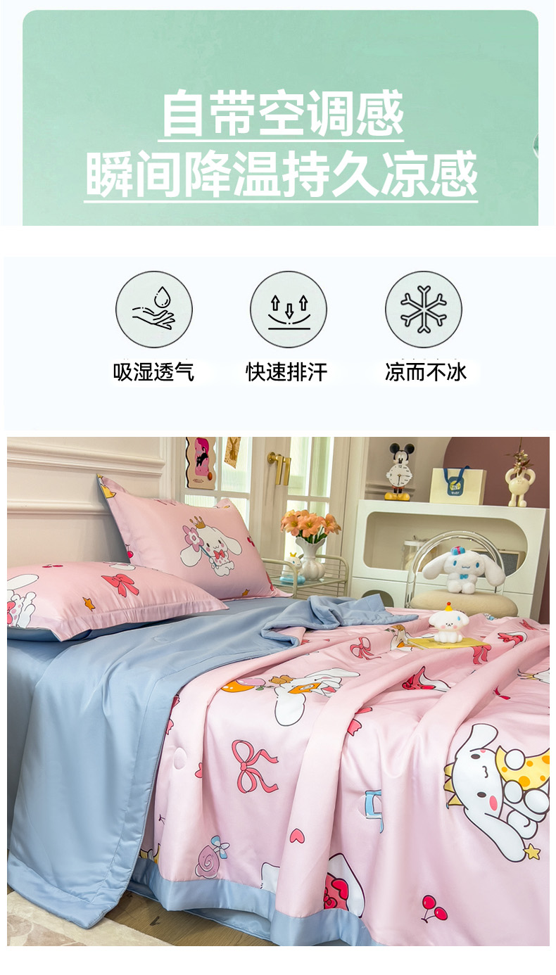 • 91家纺网 家纺一手货源 找家纺 云恋家纺 2026新款正版授权卡通冰丝夏凉被夏被空调被四件套 夏被-蝴蝶结大耳狗