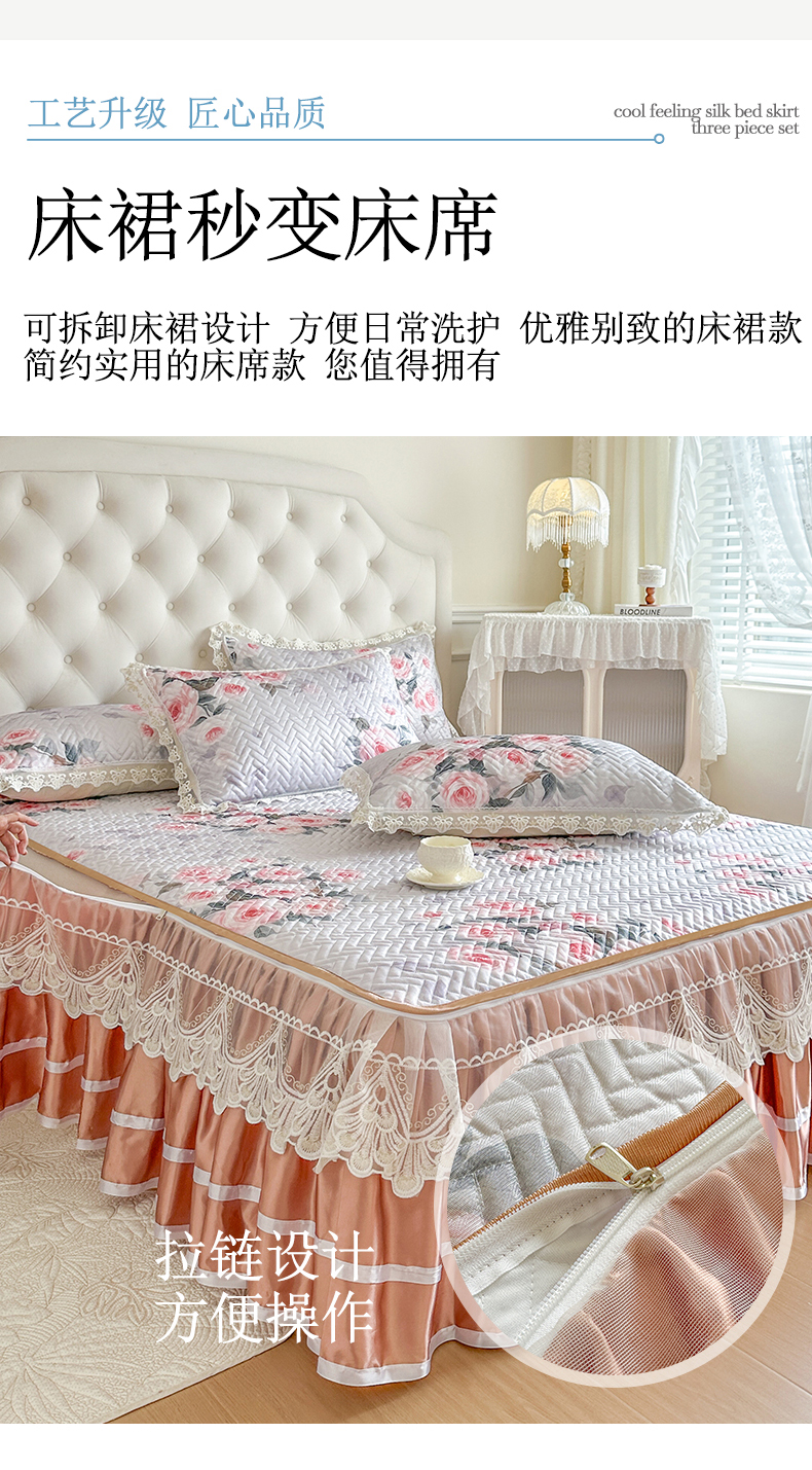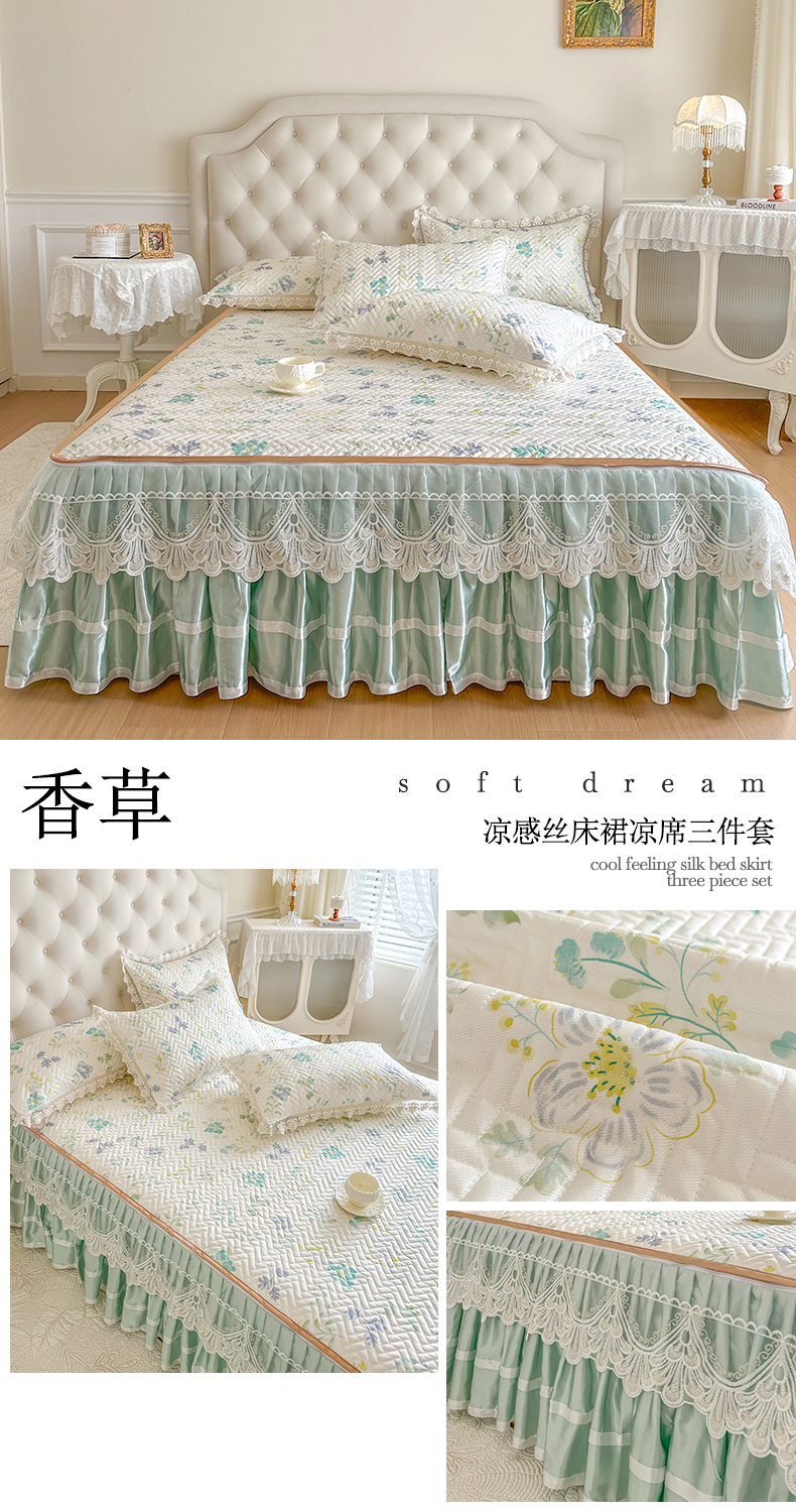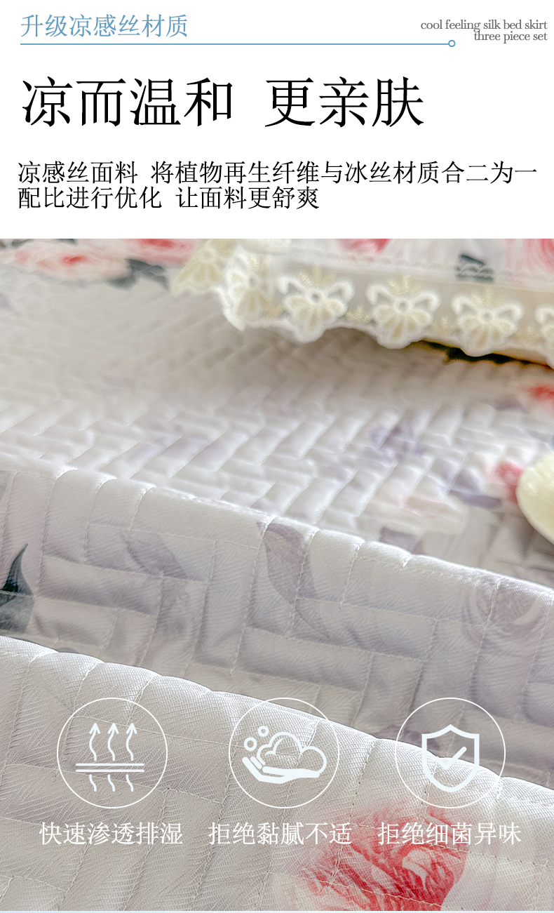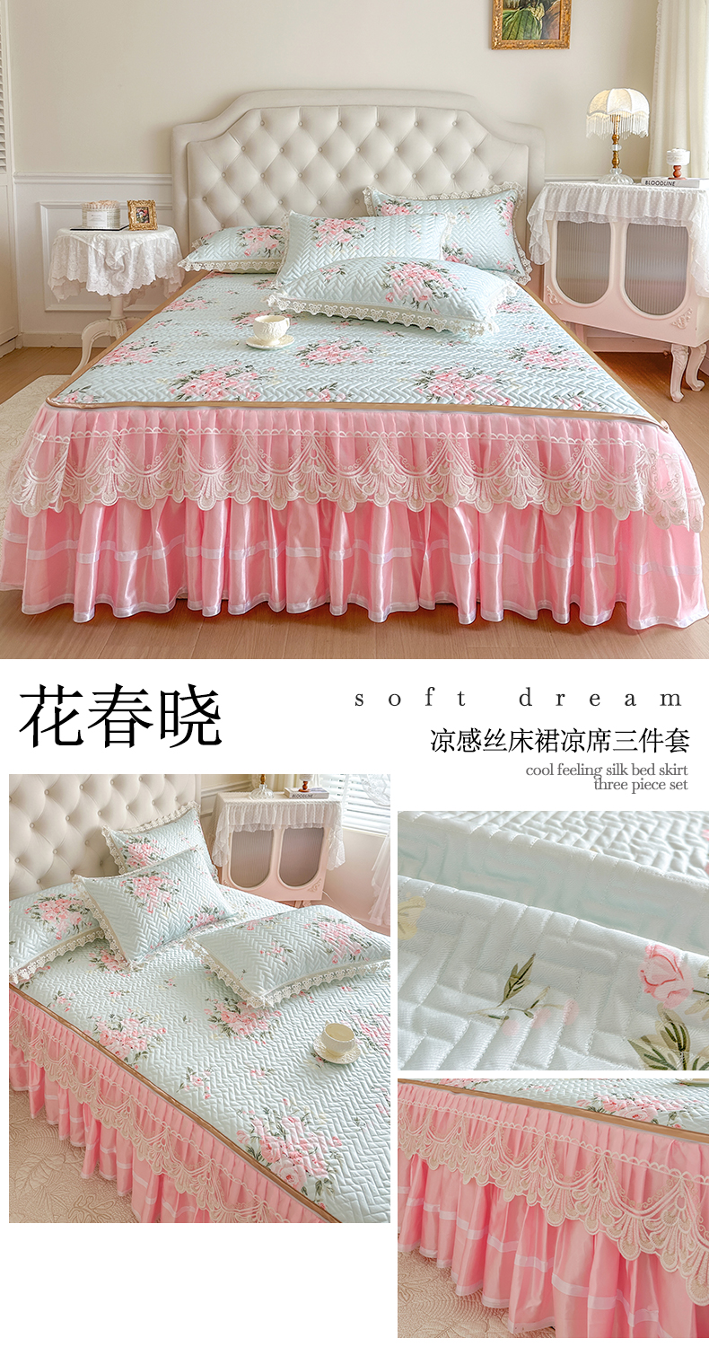 (总)网红馆(ck家纺) 2026新款冰丝夏被床裙款凉席三件套-恋夏花开(控价:三件套170元起 四件套270元起),恋夏花开-粉,恋夏花开-灰,恋夏花开-绿