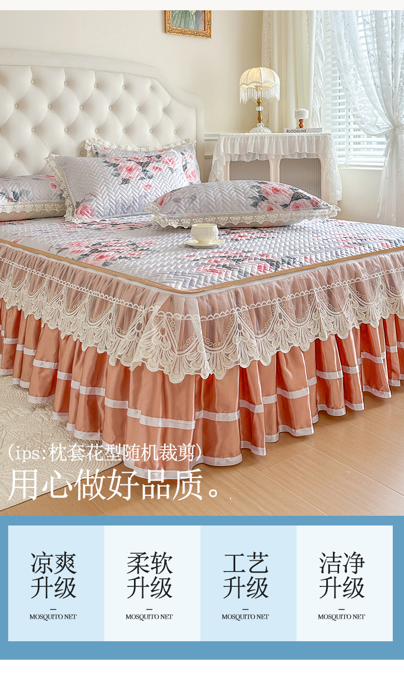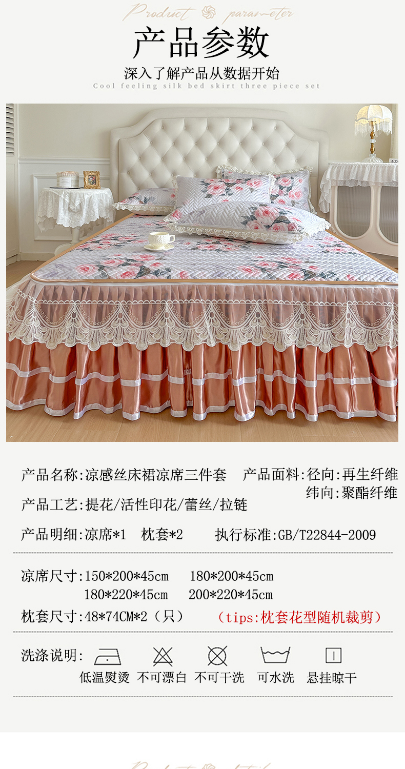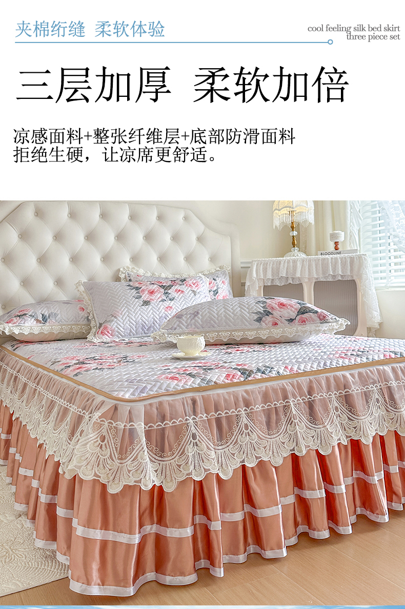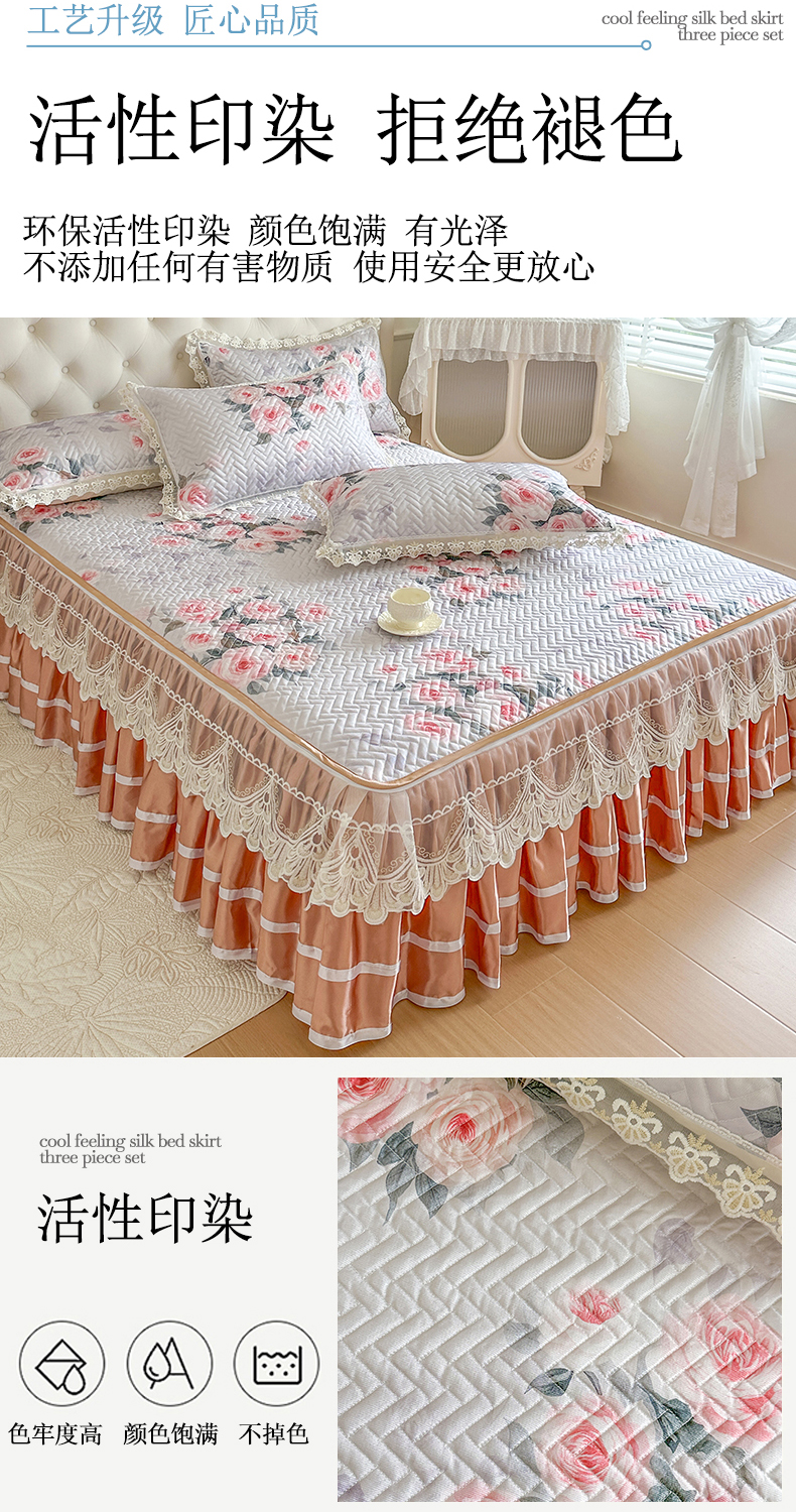 (总)网红馆(ck家纺) 2026新款冰丝夏被床裙款凉席三件套-恋夏花开(控价:三件套170元起 四件套270元起),恋夏花开-粉,恋夏花开-灰,恋夏花开-绿