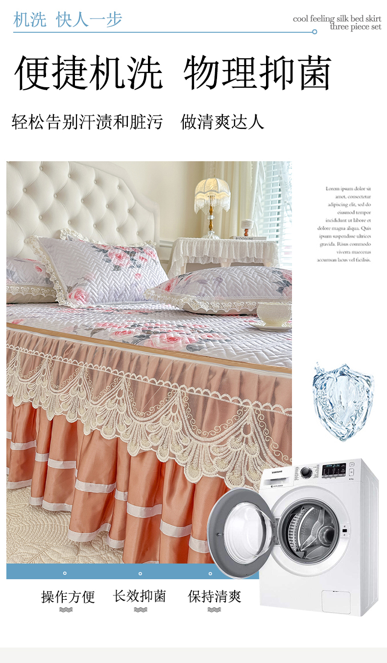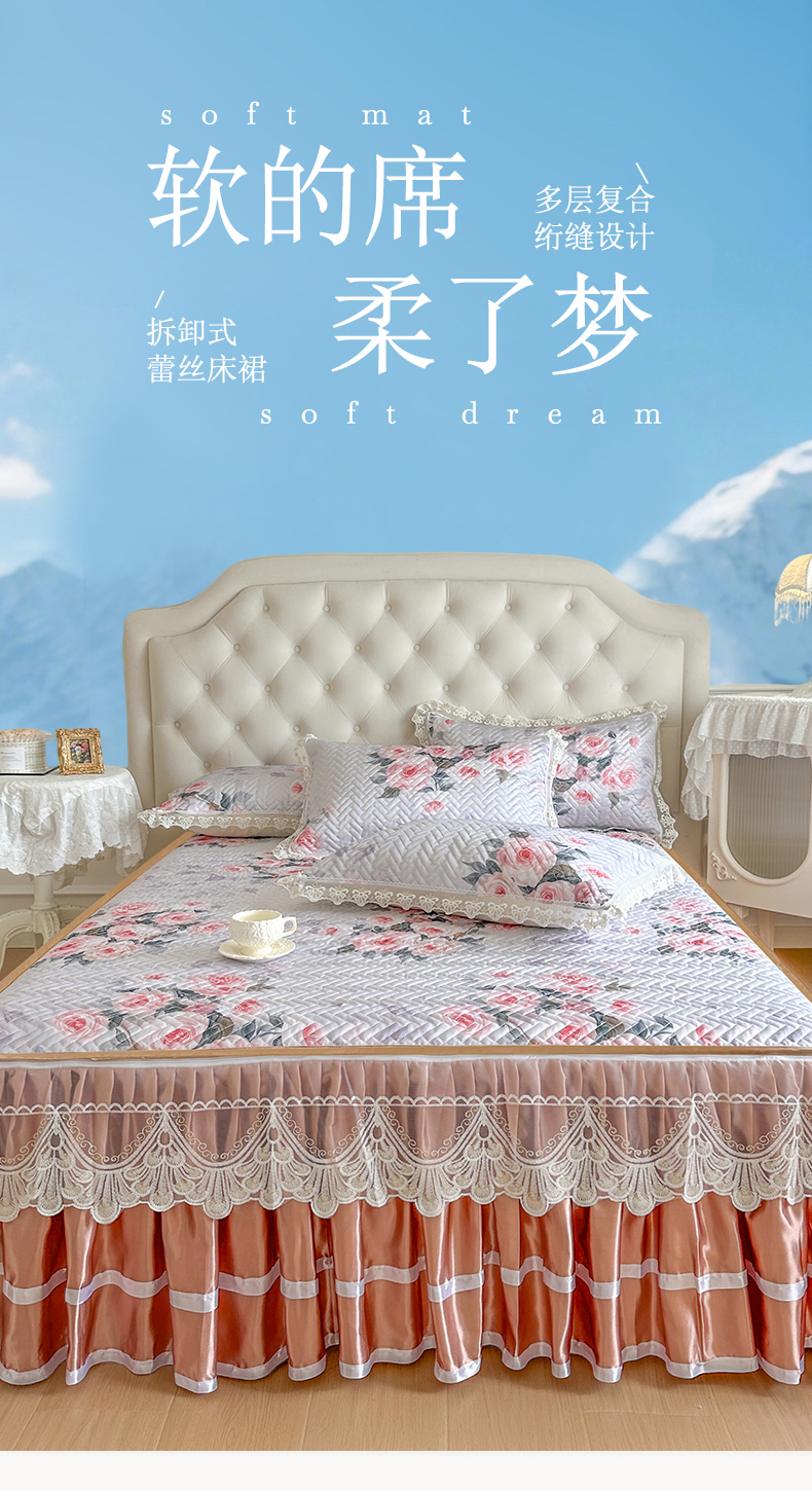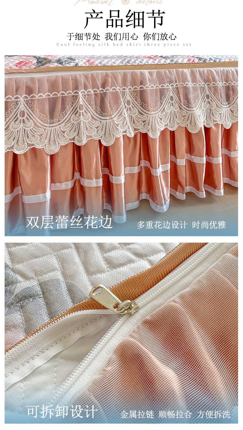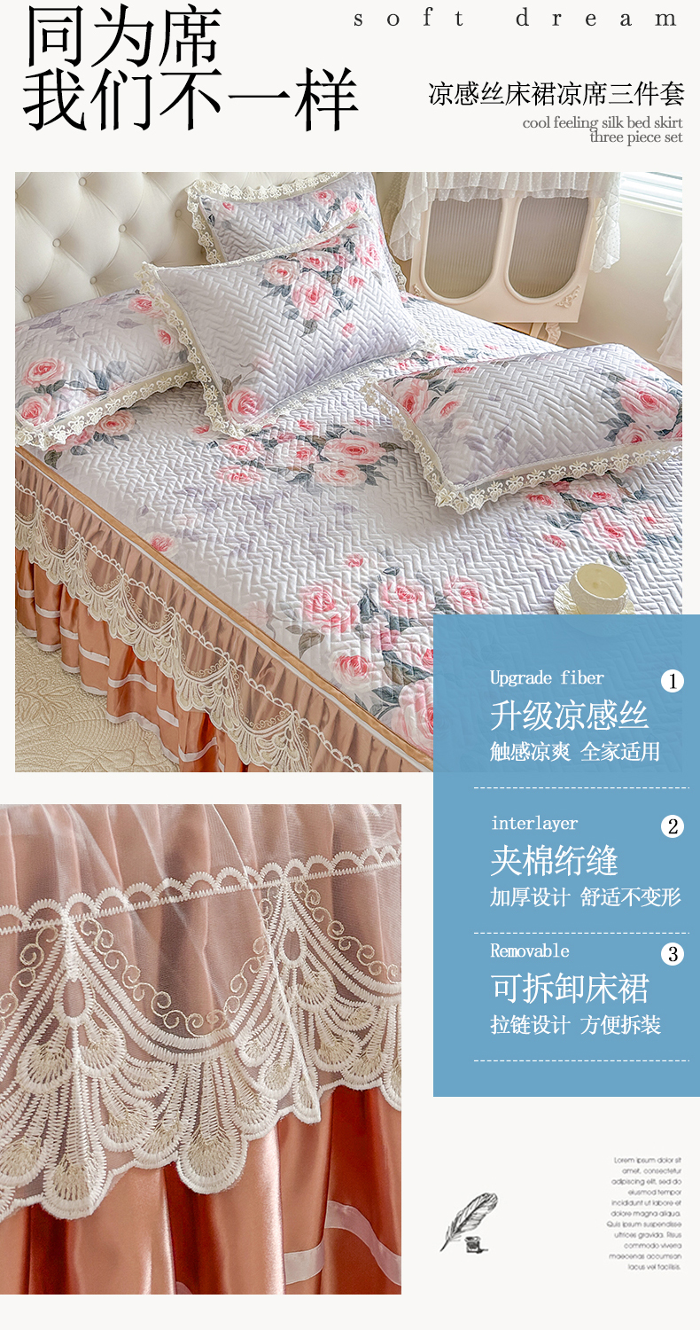(总)网红馆(ck家纺) 2026新款冰丝夏被床裙款凉席三件套-恋夏花开(控价:三件套170元起 四件套270元起),恋夏花开-粉,恋夏花开-灰,恋夏花开-绿