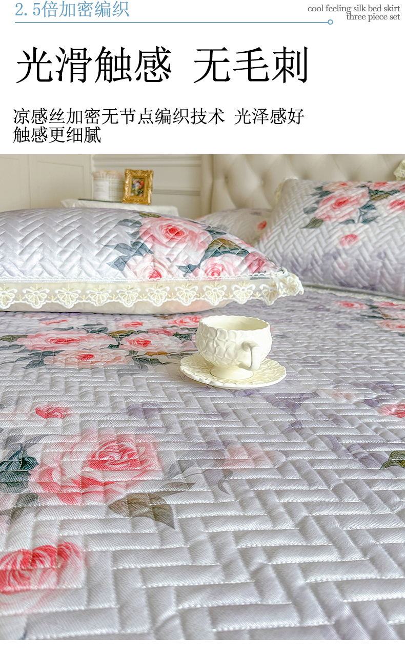 商品名称:网红馆(ck家纺) 2026新款夹棉印花冰丝凉席凉席席子三件套 花里