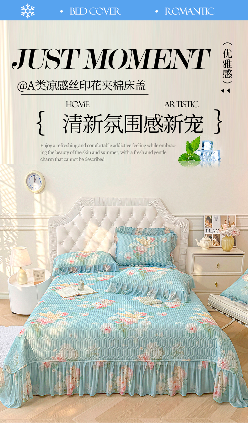 商品名称:(总)宜凡家纺 2026新款印花凉感丝夹棉床盖三件套