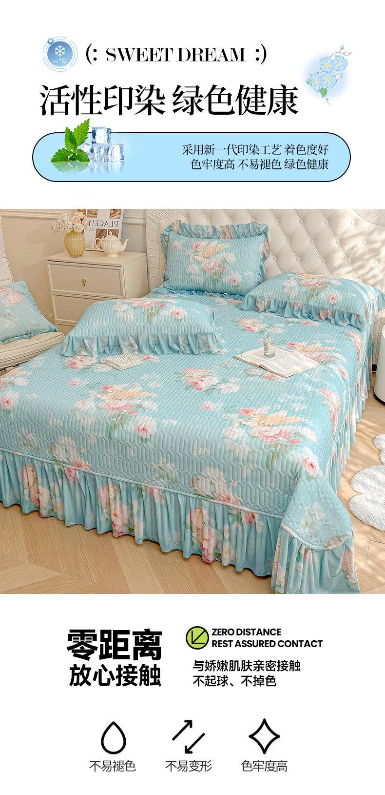 (总)宜凡家纺 2025新款全棉数码印花床裙三件套系列一,静若幽兰,浮云织梦,梦幻花园,陌上花开