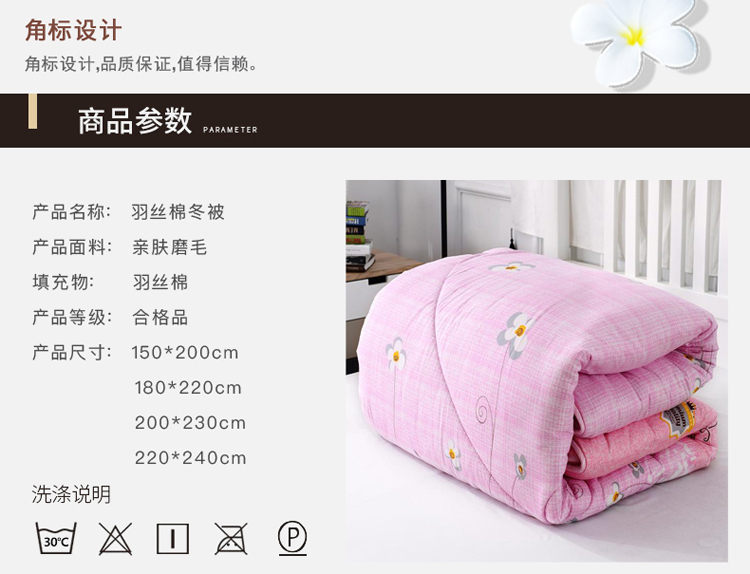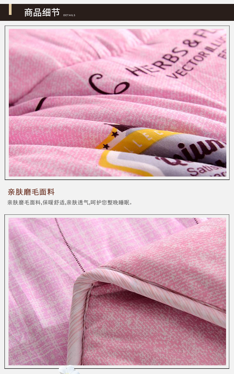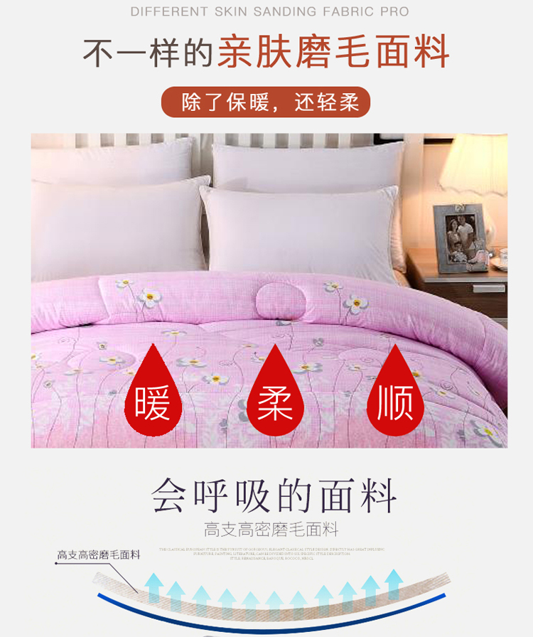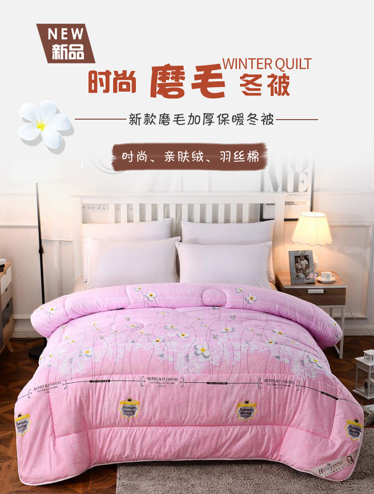 商品名称:畅畅家纺 亲肤绒磨毛羽丝绒冬被花满魁-粉