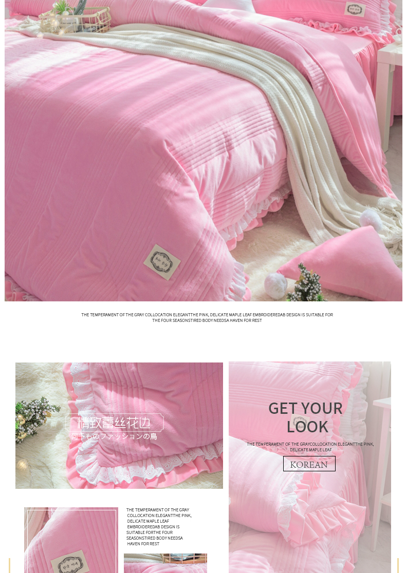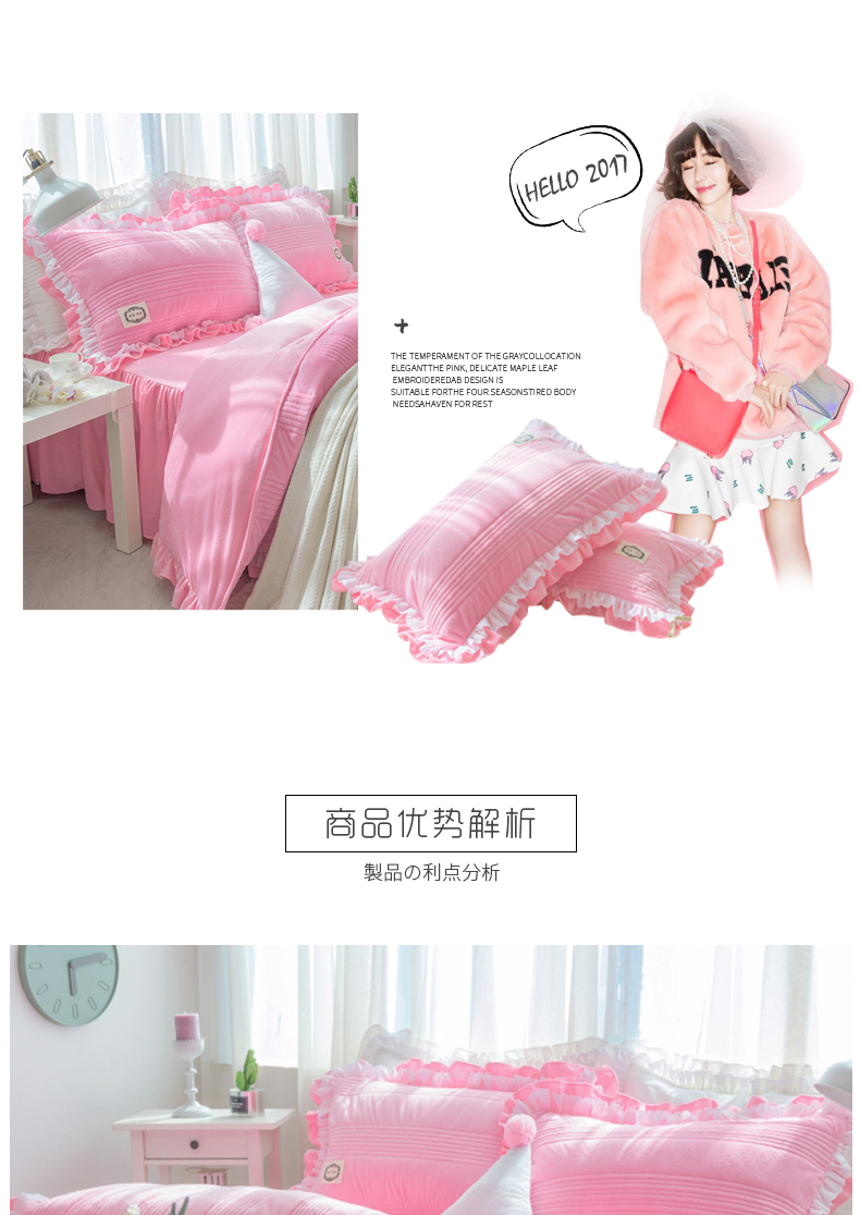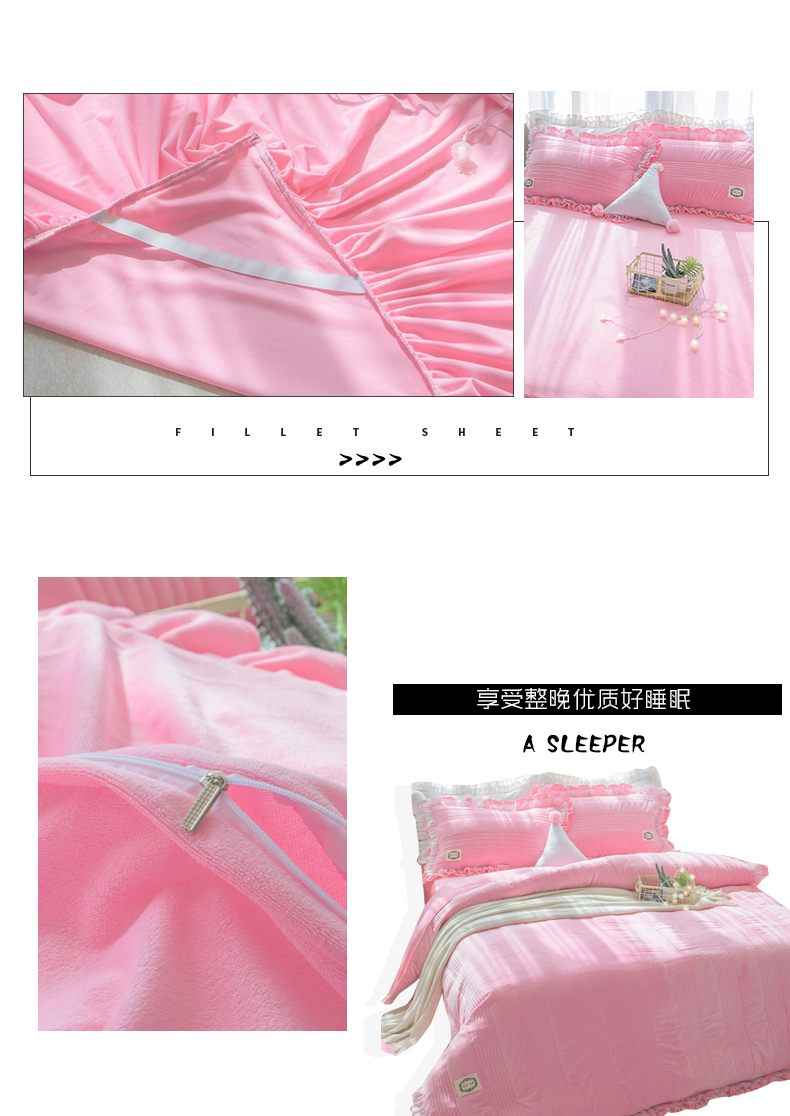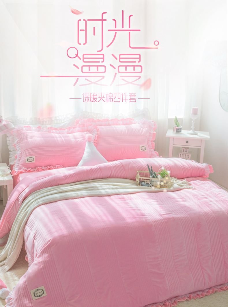 商品名称:韩国短绒水晶四件套秋冬保暖绗缝夹棉被套床裙款浪漫满屋系列6色